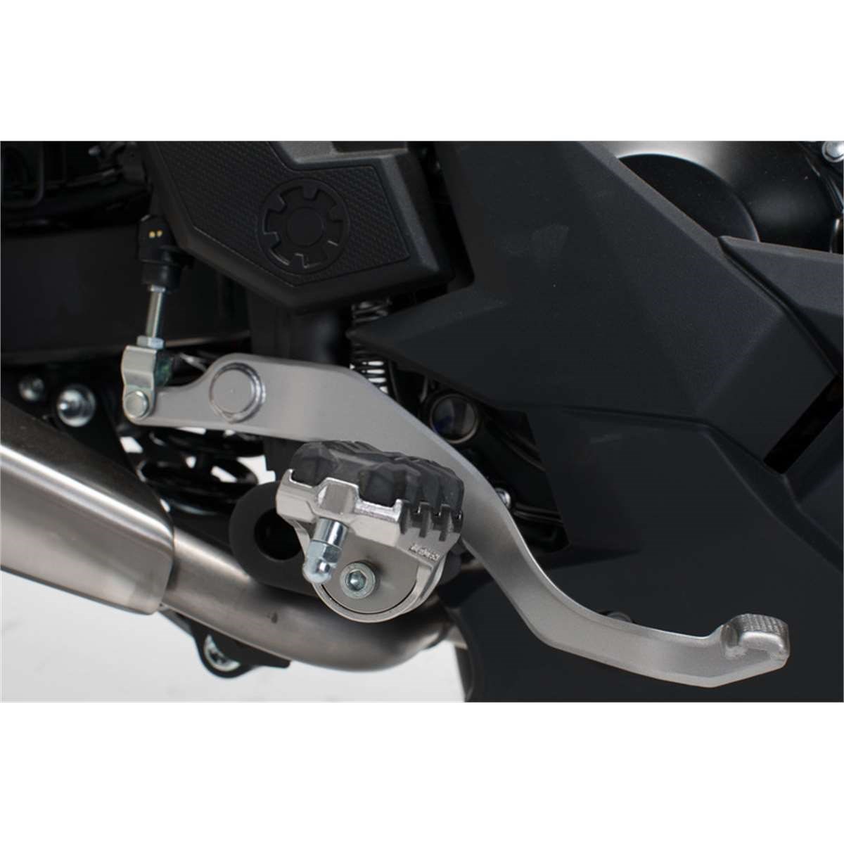 La position n'est pas confortable avec le repose-pied d'origine ? Nous proposons alors la solution idéale : le kit de repose-pieds EVO de SW-MOTECH. Un système ingénieux, composé d?éléments rotatifs à dents fixes qui s'emboîtent, permet 36 possibilités différentes. Le repose-pieds peut être réglé vers l'arrière, l'avant et le bas, et aussi incliné selon les besoins de chaque pilote. Les adaptateurs articulés se montent simplement avec les pièces d'origine sur les supports de repose-pieds. Une notice d'installation explique comment ça marche.