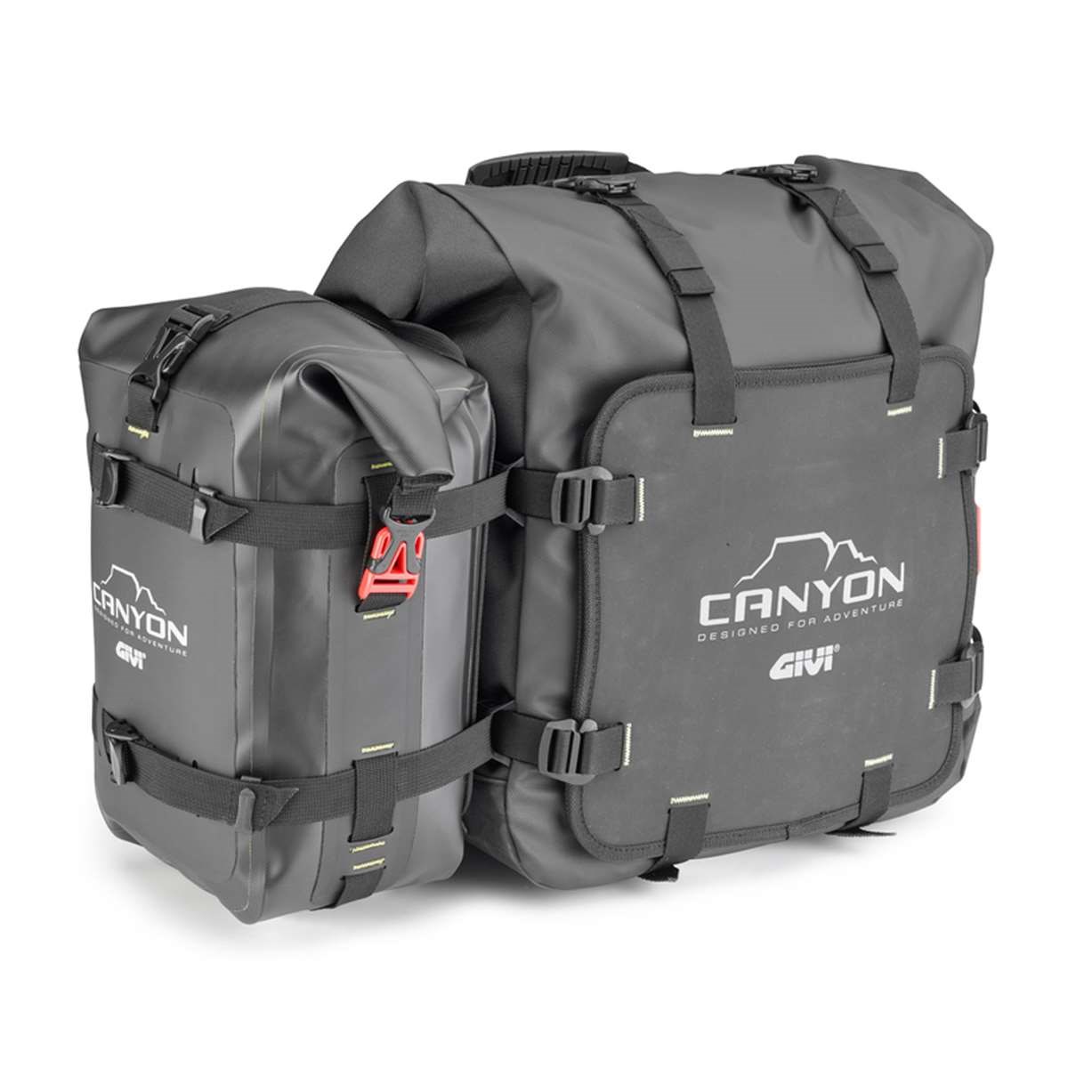 Ausgestattet mit Security Lock-Schlüssel, der mit dem Topcase und der Werkzeugkiste kombiniert werden kann, unter Verwendung der SL102-SL103-SL105 Kits. Die GRT720 Canyon Seitentaschen, bieten dank Seitenschlaufen die Möglichkeit, Ihr Gepäcks an Ihre Beladungsbedürfnisse anzupassen, von kurzen Tagesausflügen mit dem Motorrad bis hin zu längeren und anspruchsvolleren Reisen, die mit dem GRT722 als zusätzliche Seitenbeladung bewältigt werden können, starken Regenfällen und extremen Bedingungen standhalten.