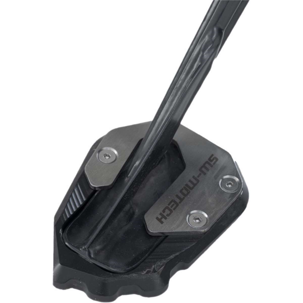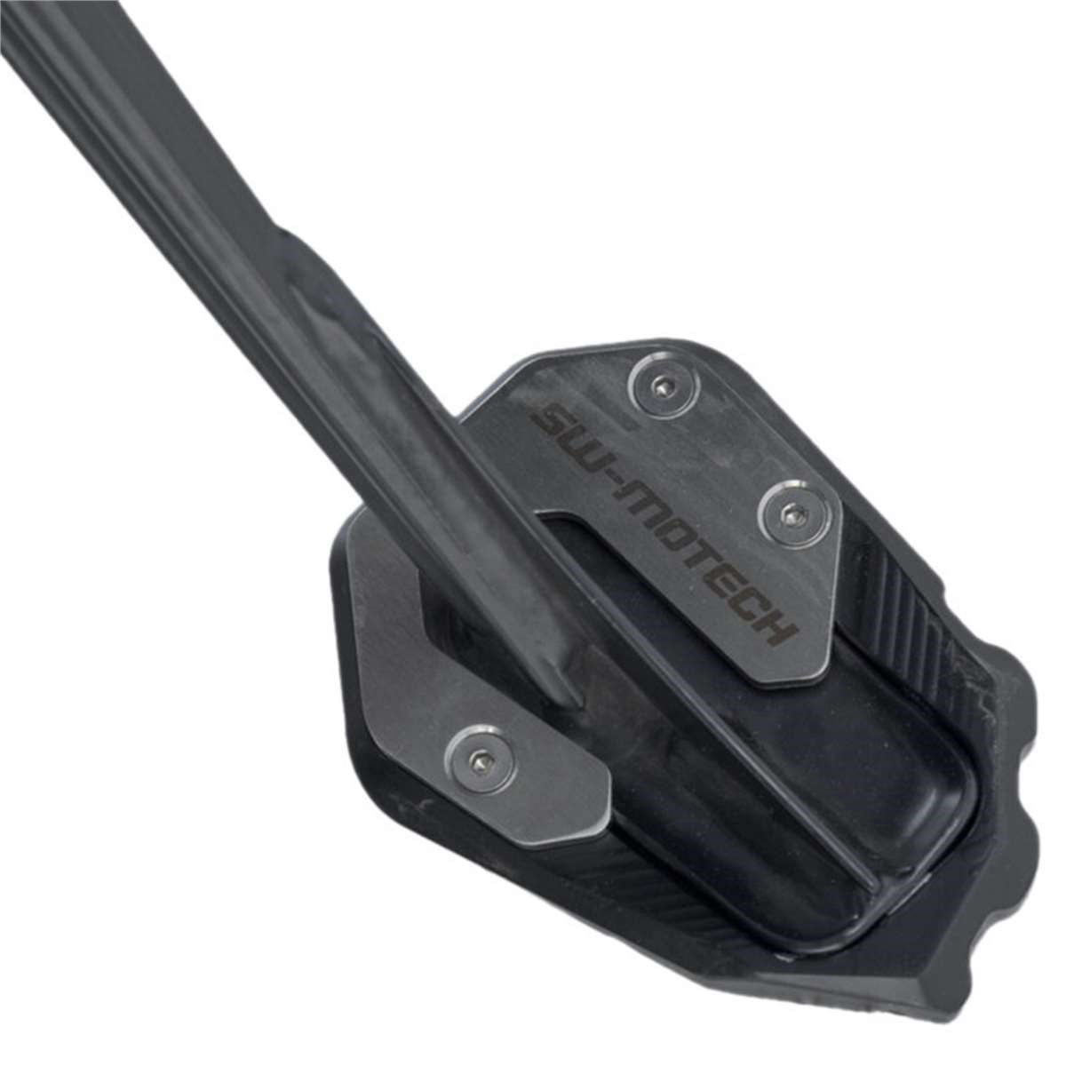 Die formschöne Fussverbreiterung ist aus hochfester Aluminium-Legierung CNC-gefrässt. Dank der grosszügigen Auflagefläche wird ein Versinken auf weichem Untergrund verhindert. Der Verbreiterungsfuss ist silber eloxiert, das obere Anbaublech schwarz pulverbeschichtet.
