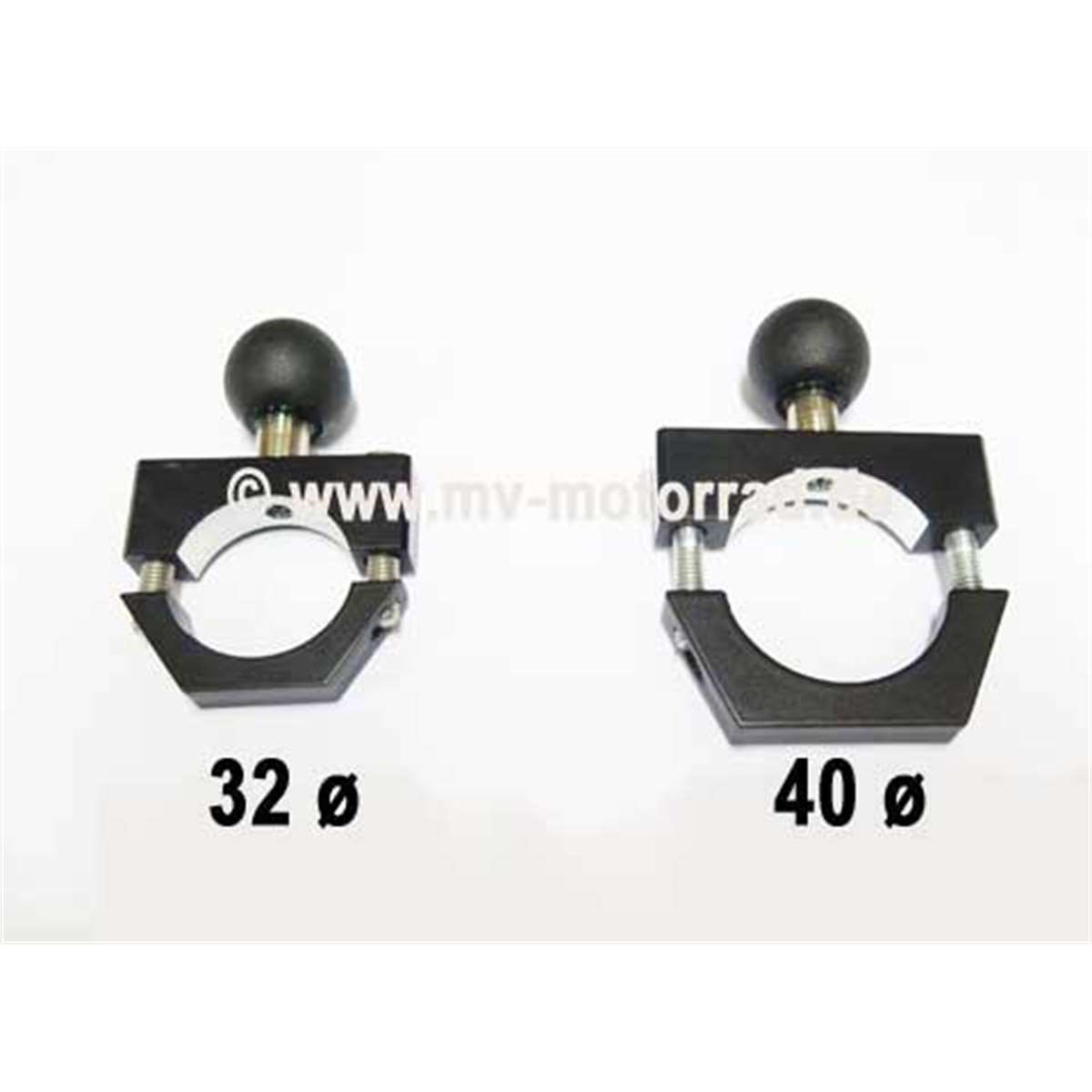 Dieser Halter ist in den Durchmessern 22 mm, 25 mm, 28 mm, 32 mm und 40 mm lieferbar. Er kann sowohl am Lenker als auch am Zylinderschutzbügel (siehe Abbildung) angebracht werden. Bitte wählen Sie Ihr benötigtes Maß.