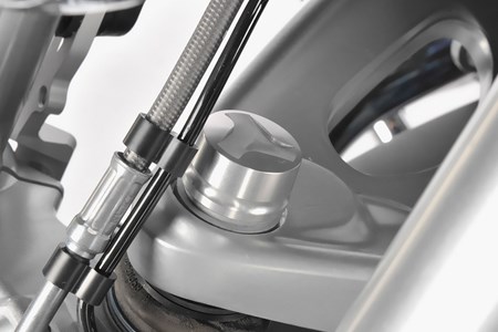 Die großen Bohrungen der Schwingenaufnahme sollten auf jeden Fall dauerhaft und sicher geschützt sein. Mit den schwarzen Original-Plastik-Abdeckkappen ist dies fast unmöglich, da sie spätestens nach dem ersten Einsatz das Zeitliche gesegnet haben. Die Folge: Die Bohrungen setzen sich mit Dreck zu und die Achse setzt Rost an.