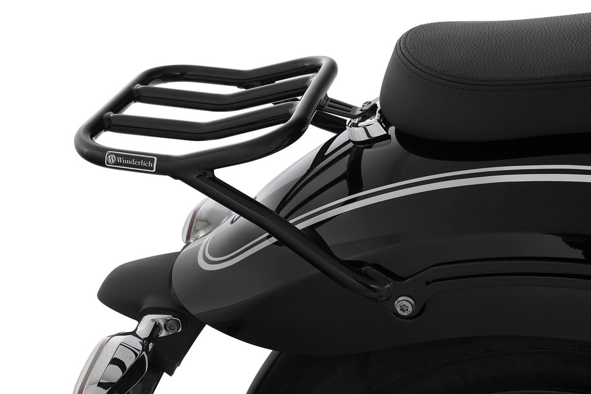 Das klare Grunddesign des Gepäckträgers ergänzt dasjenige unserer beliebten Tankreling, sodass beide Trägersysteme nicht nur die Kapazität zum Transportieren spürbar vergrößern, sondern sich auch stilistisch hervorragend ergänzen. Er lässt sich zudem ausgezeichnet mit unserer Rückenstütze (Art.-Nr. 18110-000/002) kombinieren.