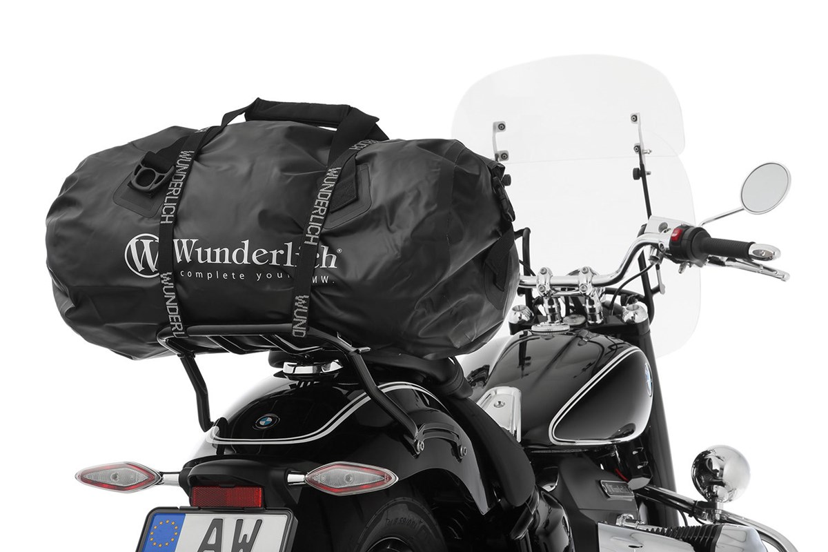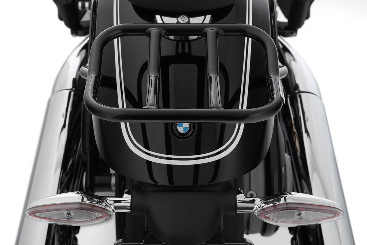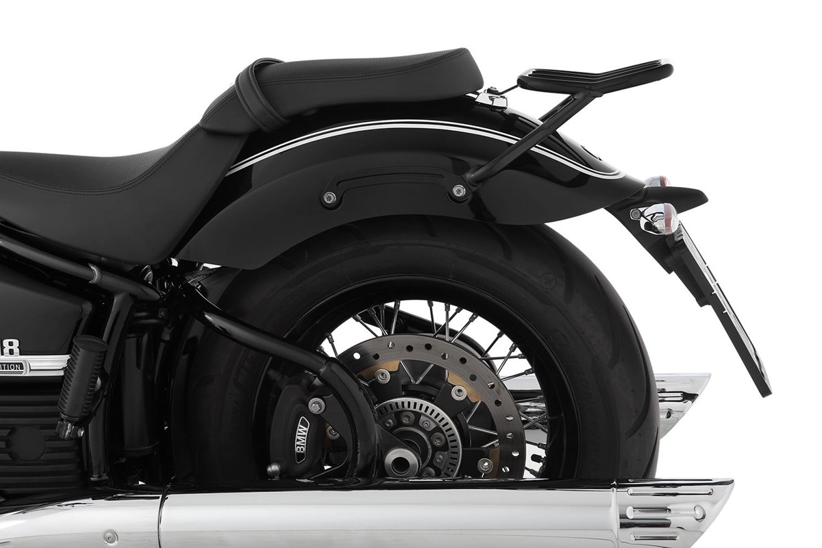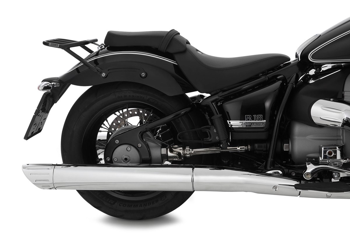 Wenn man zu zweit unterwegs ist, führt man auch Gepäck für zwei mit sich! Dieser dezente, dennoch aufwendig gestaltete Gepäckträger nimmt es für Sie auf. Taschen oder sonstiges Reisegepäck lassen sich so cruisergerecht unterbringen und sicher verzurren. Auf Reisen spielt er sein Potential in Kombination mit unseren Seiten- und Satteltaschen - oder denen von BMW - aus und nimmt zusätzliches Gepäck auf. Die schwerpunktnahe Platzierung unterstützt das gutmütige, neutrale Fahrverhalten der BMW R 18.