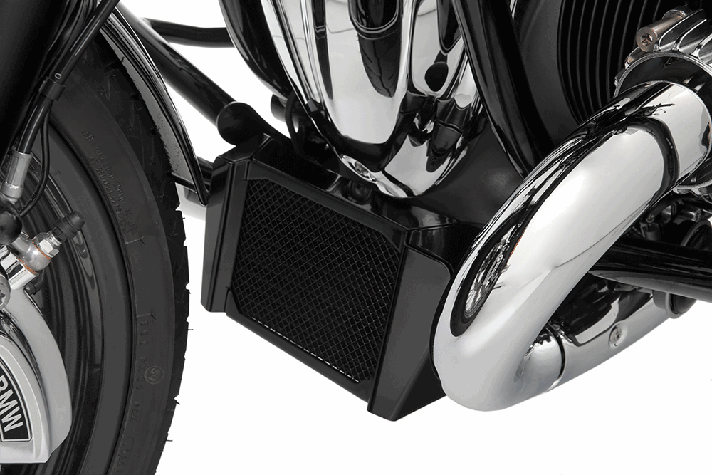 Die serienmäßige Verkleidung des Ölkühlers der BMW R 18 aus Kunststoff erscheint vielen wie ein Fremdkörper in einem ansonsten ausgesprochen stimmigen Konzept. Wir haben eine edle Verkleidung komplett aus schwarz pulverbeschichtetem Edelstahl entwickelt, die den Big Boxer nicht nur optisch aufwertet, sondern zusätzlich die Funktion des Schutzes des Ölkühlers übernimmt. Unser Ölkühlerverkleidung überzeugt also doppelt: Mit unserem bewährten Kühlerschutzkonzept und einem stimmigen, integrierten Design, das dem Big Boxer gerecht wird.