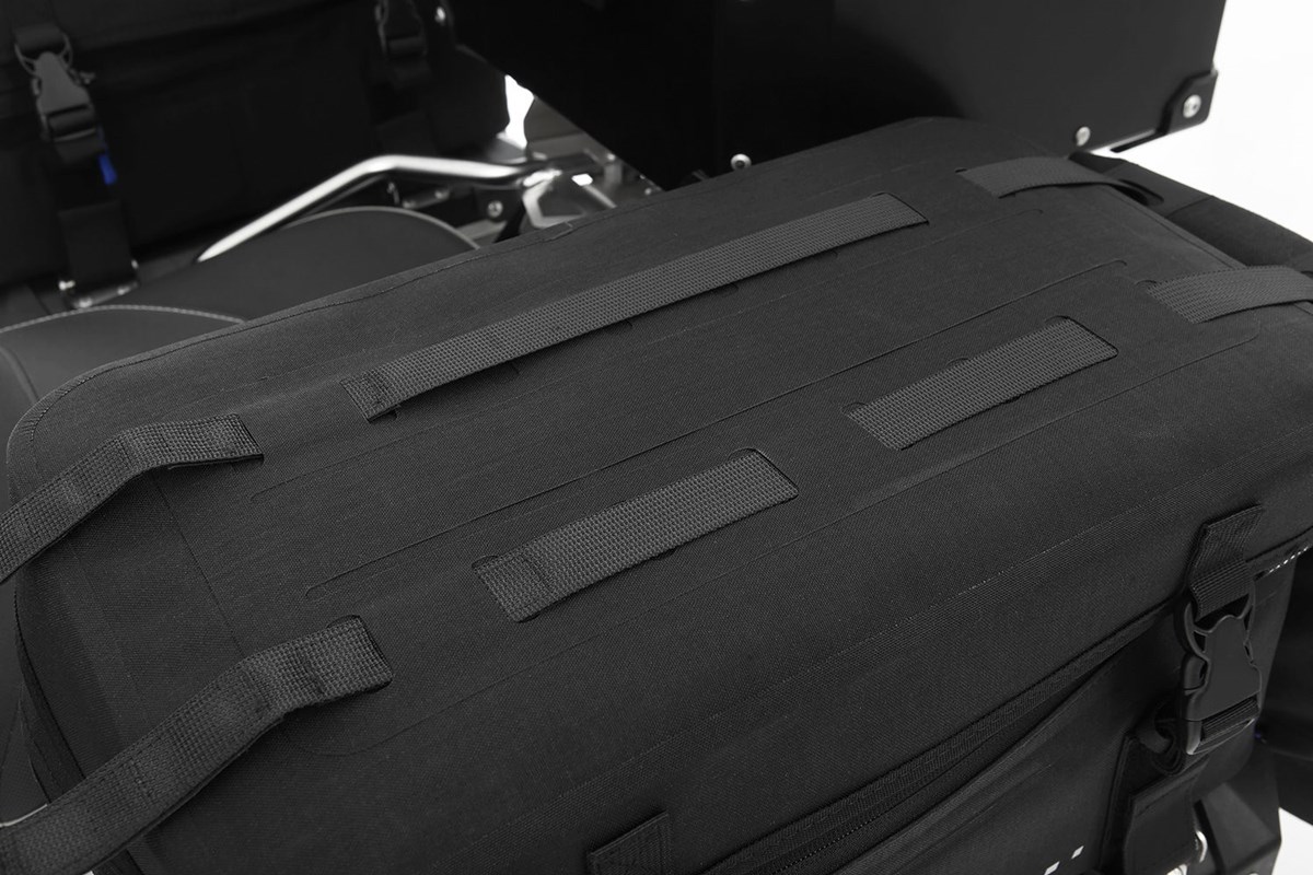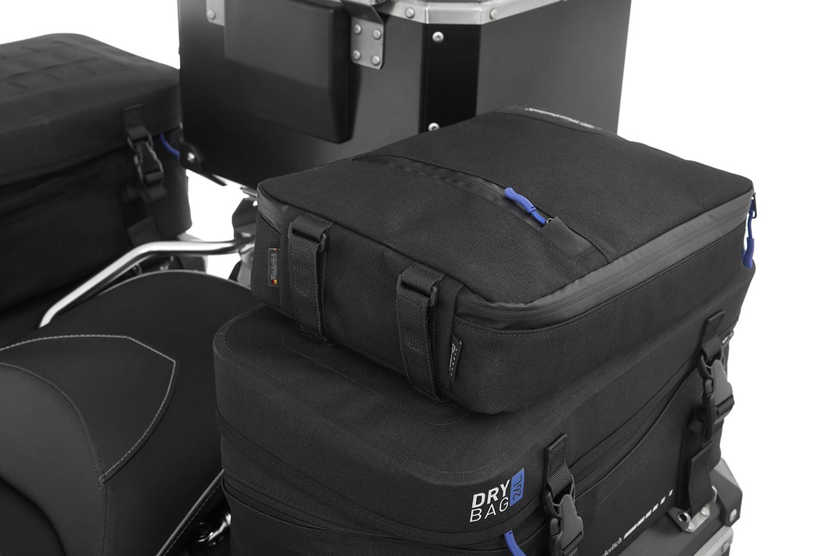 Hinweis: Die Aufsatztasche kann ausschließlich auf Wunderlich DRYBAG Koffertoptaschen befestigt werden, die mit unserem, dem militärischen Molle System vergleichbaren, Haltesystem ausgestattet sind.