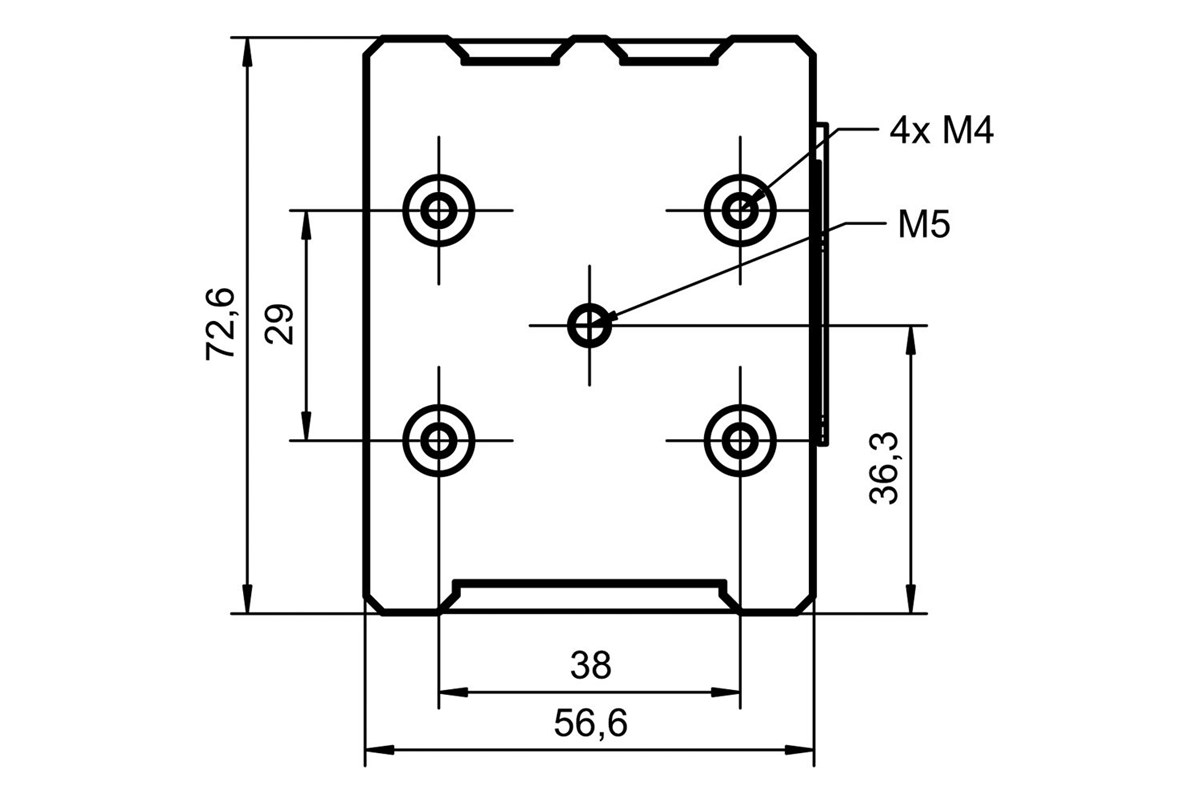 Frontseitig ist unsere Ladebox mit vier Schrauben ausgestattet. Diese sind exakt so angeordnet, dass sie dem genormten Lochbild diverser Befestigungssysteme wie beispielsweise auch dem der Halterung des Garmin Zumo XT Navigationsgeräts entsprechen. Damit lassen sich diese Befestigungssysteme im Handumdrehen sicher und platzsparend auf der Ladebox verschrauben und die Geräte mit der Stromversorgung verbinden.