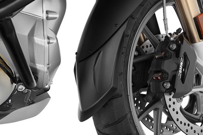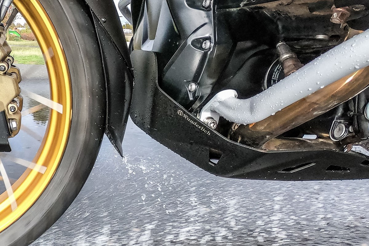 Unsere Kotflügelverlängerung »EXTENDA FENDER« schützt dreifach: Sie schützt den Fahrer gegen vom Vorderrad aufgewirbeltes Spritzwasser und dessen unangenehme Folgen. Sie schützt das Motorgehäuse und die Krümmer effektiv vor Steinschlag. Und sie reduziert die Verschmutzung des Motorgehäuses und die der Krümmer.