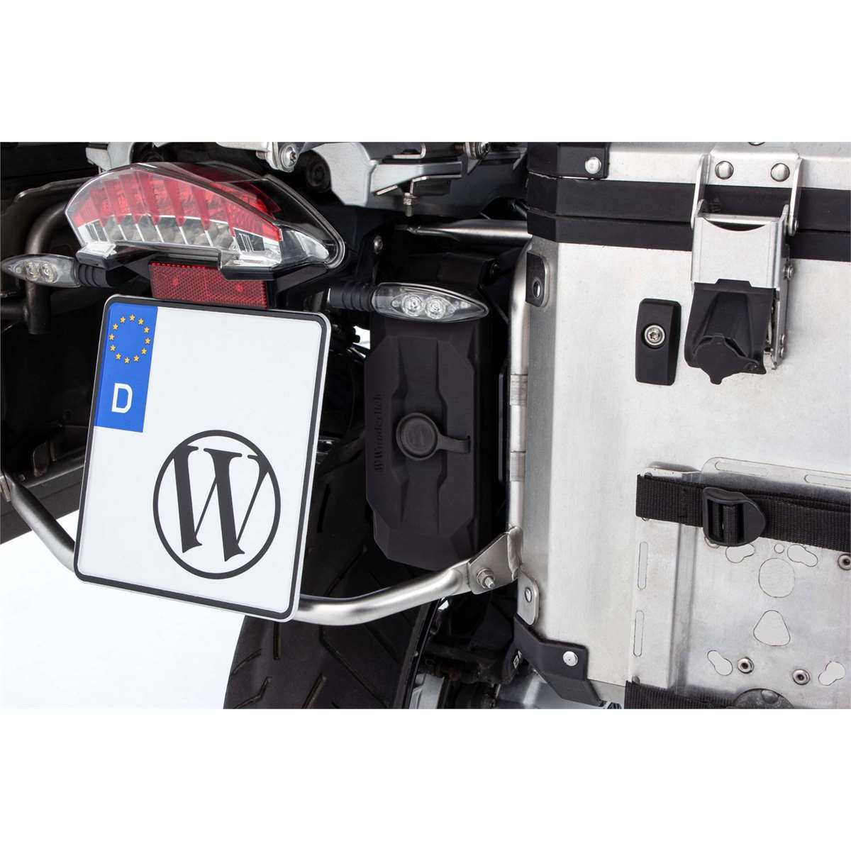 Unsere maßgeschneiderte Werkzeugbox bietet zusätzlichen Stauraum für allerlei hilfreiche  Kleinigkeiten und integriert sich dafür perfekt in die Nische zwischen dem rechten Kofferträger und dem Hinterrad. Die funktionale, robuste Box ist mit vier soliden Gewindeeinsätzen versehen und wird mit einem Halter und passenden Schellen am serienmäßigen Kofferträger sicher montiert. Für die jederzeit gute Zugänglichkeit lässt sie sich vom Heck her -auch bei montierten Koffern- öffnen und schließen. Der Deckel ist gegen Verlust gesichert. Die aus hochwertigem Kunststoff bestehende Box ist wasserdicht und extrem robust. Wir liefern sie mit dem Halter.
