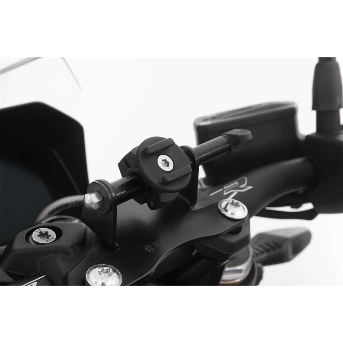 Mit diesem Geräteträger universal haben wir eine Basis entwickelt, an der unsere Naviaufnahme universal (21098-000), der Multiclamp Adapter (45155-402) oder SP-Connect Smartphone System Mirror Bundle (45151-0), aber auch andere Smartphone- und Navi-Befestigungssysteme bedienergonomisch günstig auf der Lenkerklemmung platziert werden können. Mit seiner zylindrischen Aufnahme (Länge 59 mm, Ø 13 mm) haben wir den Grundhalter so konstruiert, dass fast alle gängigen Befestigungssysteme damit kompatibel sind.
