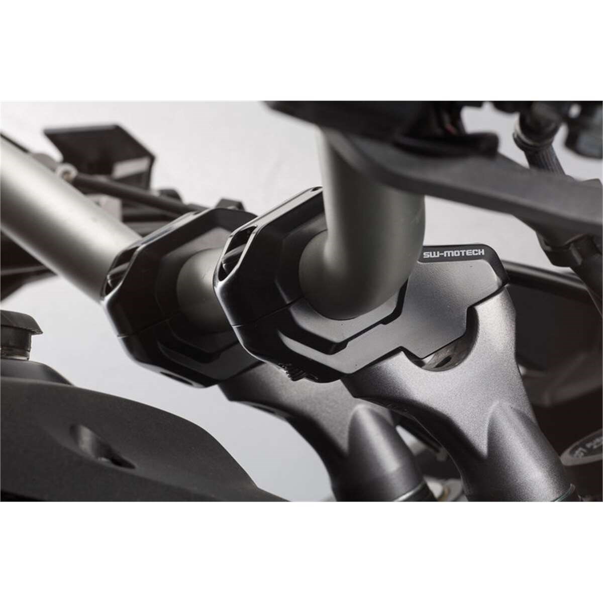 Wer den Lenker nicht bequem erreichen kann, sollte über die Anschaffung einer Lenkerverlegung nachdenken. Unsere stabilen Verlegungen aus Aluminium rücken den Lenker um 30 mm nach oben und um 21 mm nach hinten. Das kann für den Fahrer eine entspanntere, rückengerechte Sitzposition und damit bessere Fahrzeugbeherrschung bedeuten. Die stabile und witterungsbeständige Lenkerverlegung passt auf Lenker mit einem Durchmesser von 22 mm.