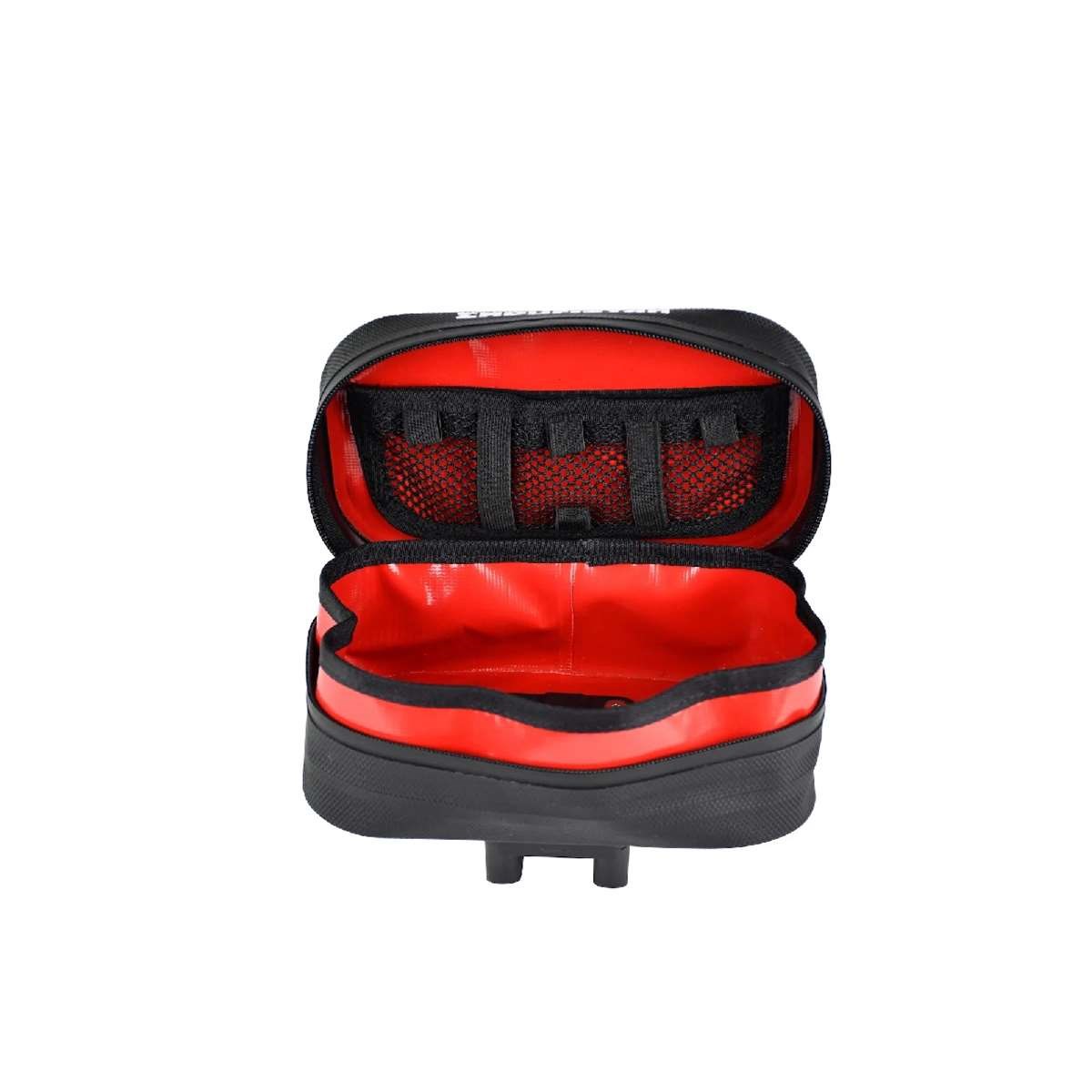 - Wasser-, schlamm-, schnee- und staubdicht - Rote Innenbeschichtung fu¨r besten Kontrast - Zusätzliche, innenliegende Netztasche - Wasserdichte Kabeldurchführungen zum Hauptfach und zur Smartphonetasche - Diverse Halteschlaufen - Abnehmbare Tasche für das Smartphone - Volumen 1,3 Liter - Gewicht 350 Gramm - L/B/H 19x11x7 cm - Lenkerdurchmesser 22, 28 und 32 mm