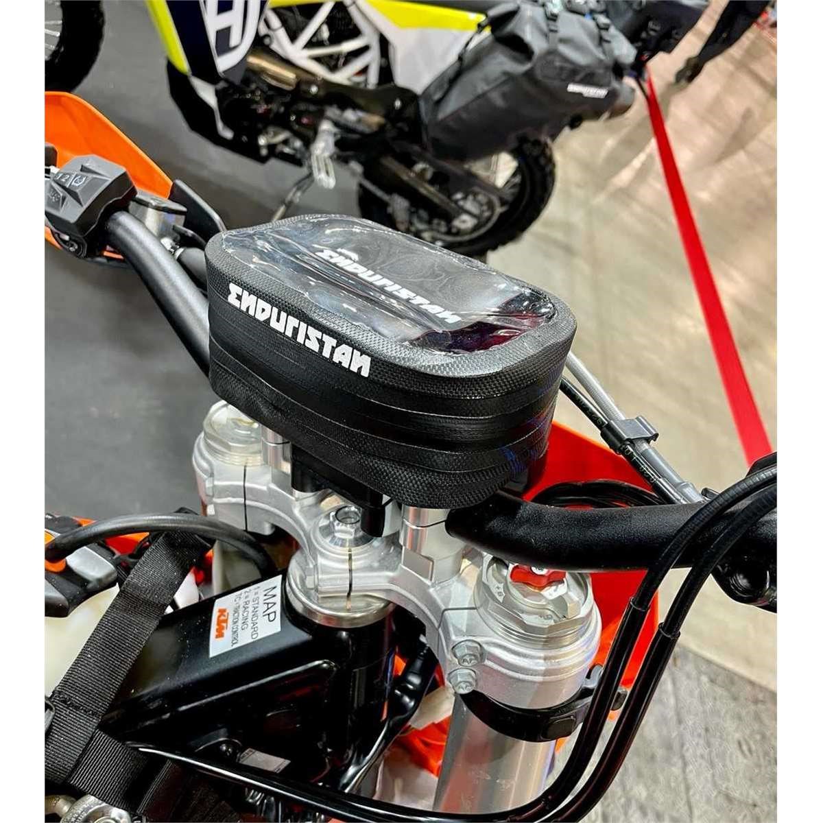 Manchmal will man beim Motorradfahren, insbesondere beim Enduro fahren, wirklich nur das allernötigste dabeihaben – dies dann dafür aber jederzeit griffbereit. Ein Tankrucksack ist manchmal zu gross oder passt schlicht und einfach nicht auf das Motorrad. Doch wohin mit Smartphone, Hausschlüssel, Portemonnaie. etc.? Genau da kommt der Handlebar Bag - Small zum Einsatz. Mit seiner innovativen Befestigungsklemme passt er an nahezu jeden Lenker (22, 28 und 32 mm Durchmesser) und wird mit diesem fest verschraubt- so ist das Handlebar Bag auch automatisch gegen Diebstahl gesichert und hält bei wirklich jedem Einsatz bombenfest am Motorrad.