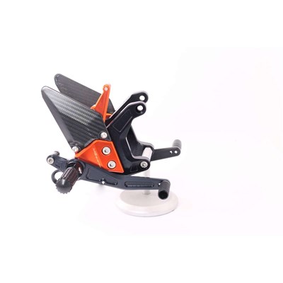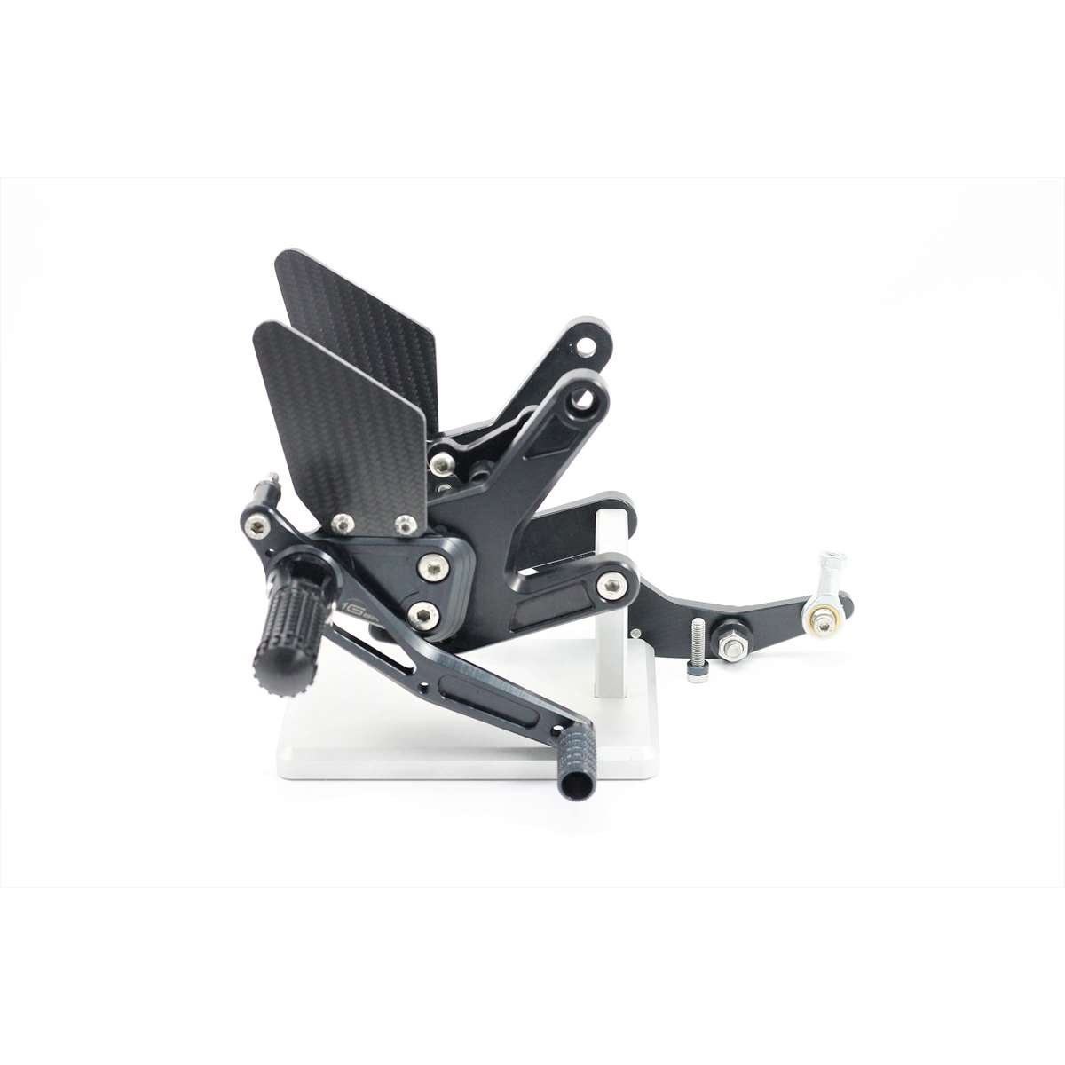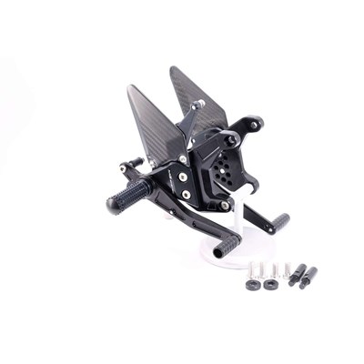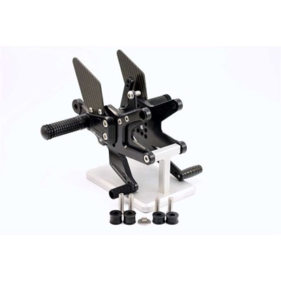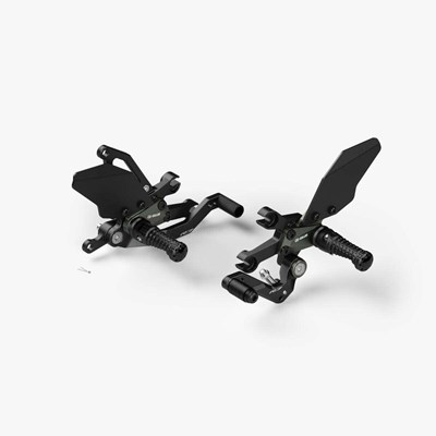 Fussrastenanlage, voll ergonomisch verstellbar in 8 Positionen und bis 20 mm.