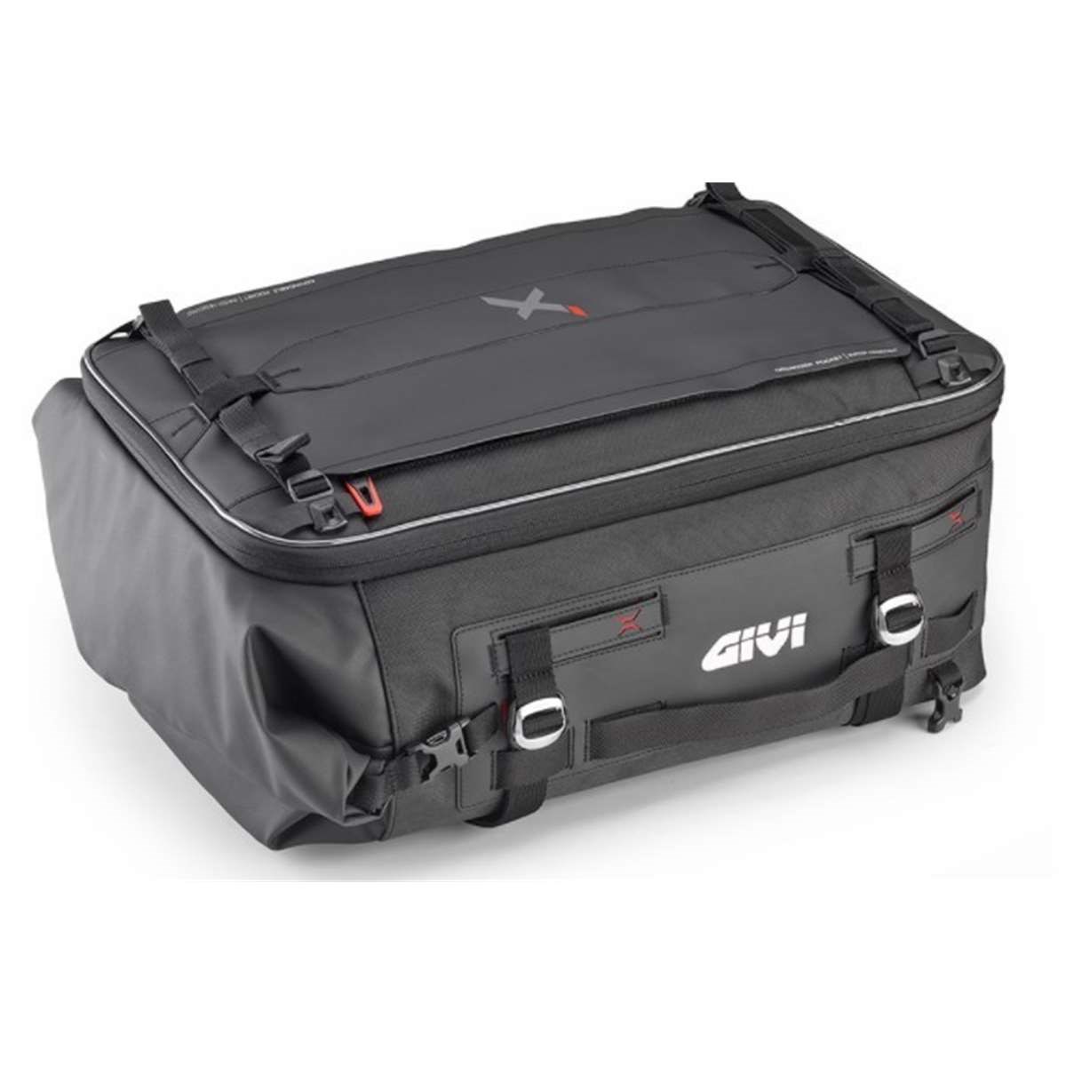 Packtasche Roll-Top wasserabweisend, erweiterbar von 39 auf 52 Liter. Anpassbar für die Montage auf: Koffern mit Gurtschlaufen, kleinen Gepäckträgern zur Montage auf Topcases, Soziussätteln. Entwickelt für alle Motorradarten für die Einsatzarten „Gran-turismo“ und „Adventure“.
