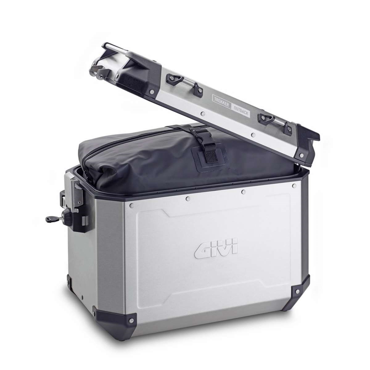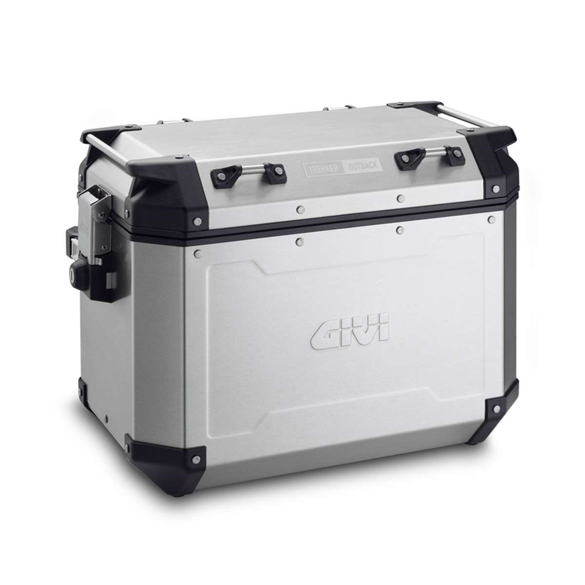 Neue Trekker Outback Koffer mit Aluminium-Struktur und Aluminium-Profilen (37 Liter und 48 Liter). Ausgestattet mit dem neuen Befestigungssystem Monokey® Cam-Side, Befestigungsmechanismus aus Druckguss-Aluminium und Einsätzen aus verstärktem Technopolymer.