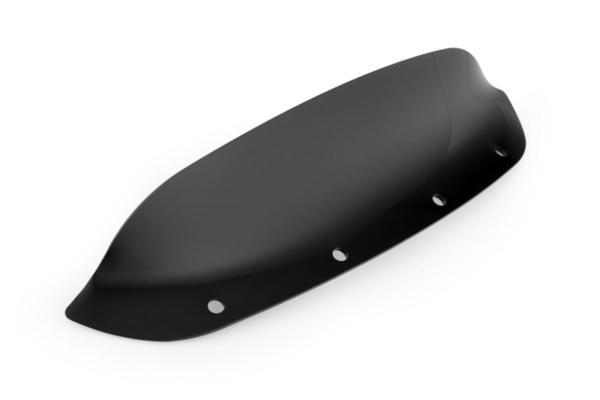 Fünf Millimeter Scheibenstärke stehen für mechanische und aerodynamische Stabilität. Unsere typische, hochwertige Verarbeitung des kratz- und bruchfesten PMMA-Werkstoffs erkennt man beim Durchsehen: Klarer Durchblick, ohne verzerrende optische Fehler, die irritieren. Weiteres Markenzeichen: Die handpolierten, gerundeten Kanten, die einen separaten Kantenschutz überflüssig machen.