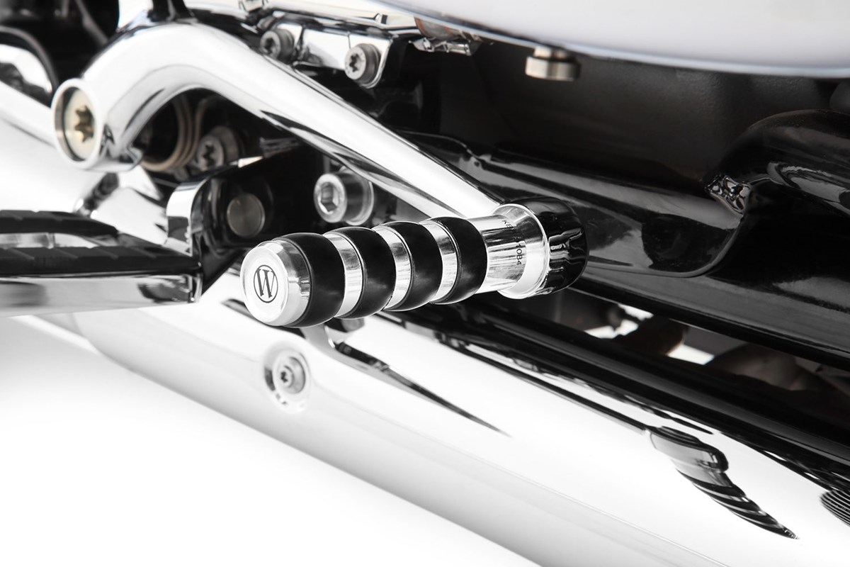 Unsere Bremshebelverlängerung optimiert die Bedienung der Fußbremse der R 18. Sie erleichtert das Bremsen nicht nur spürbar, sie verbessert auch die Dosierbarkeit und den Komfort. Der längere Hebel reduziert die Gefahr, den Bremshebel bisweilen nur ungenau zu treffen und abzurutschen. Das bedeutet ein Plus an Bediensicherheit, besonders in brenzligen Situationen, in denen es darauf ankommt.
