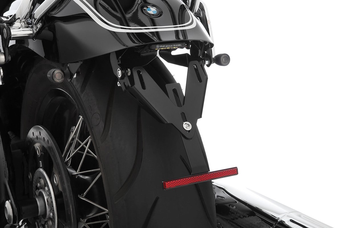 Der Umbausatz beinhaltet die Halter für die Zubehörblinker sowie den in der Neigung einstellbaren, puristisch designten Kennzeichenträger, der eigentlich viel zu schön ist, als dass er hinter dem Kennzeichen verschwindet. Beides besteht aus hochwertig verarbeitetem, unverwüstlichem Edelstahl, der schwarz-pulverbeschichtet ist. Der (demontierbare) Rückstrahler setzt einen filigranen Akzent am unterer Abschluss des Kennzeichens. Inklusive: Der LED Kennzeichenbeleuchtung mit E-Prüfzeichen. Typisch Wunderlich: Plug & Play. Die Komponenten werden an vorhandenen Anschraubpunkten einfach verschraubt.