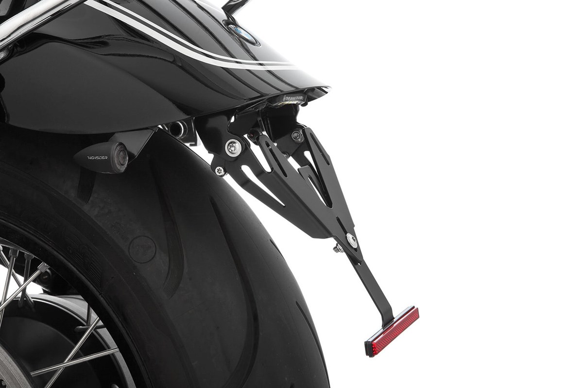 Der Umbausatz beinhaltet die Halter für die Zubehörblinker sowie den in der Neigung einstellbaren, puristisch designten Kennzeichenträger, der eigentlich viel zu schön ist, als dass er hinter dem Kennzeichen verschwindet. Beides besteht aus hochwertig verarbeitetem, unverwüstlichem Edelstahl, der schwarz-pulverbeschichtet ist. Der (demontierbare) Rückstrahler setzt einen filigranen Akzent am unterer Abschluss des Kennzeichens. Inklusive: Der LED Kennzeichenbeleuchtung mit E-Prüfzeichen. Typisch Wunderlich: Plug & Play. Die Komponenten werden an vorhandenen Anschraubpunkten einfach verschraubt.