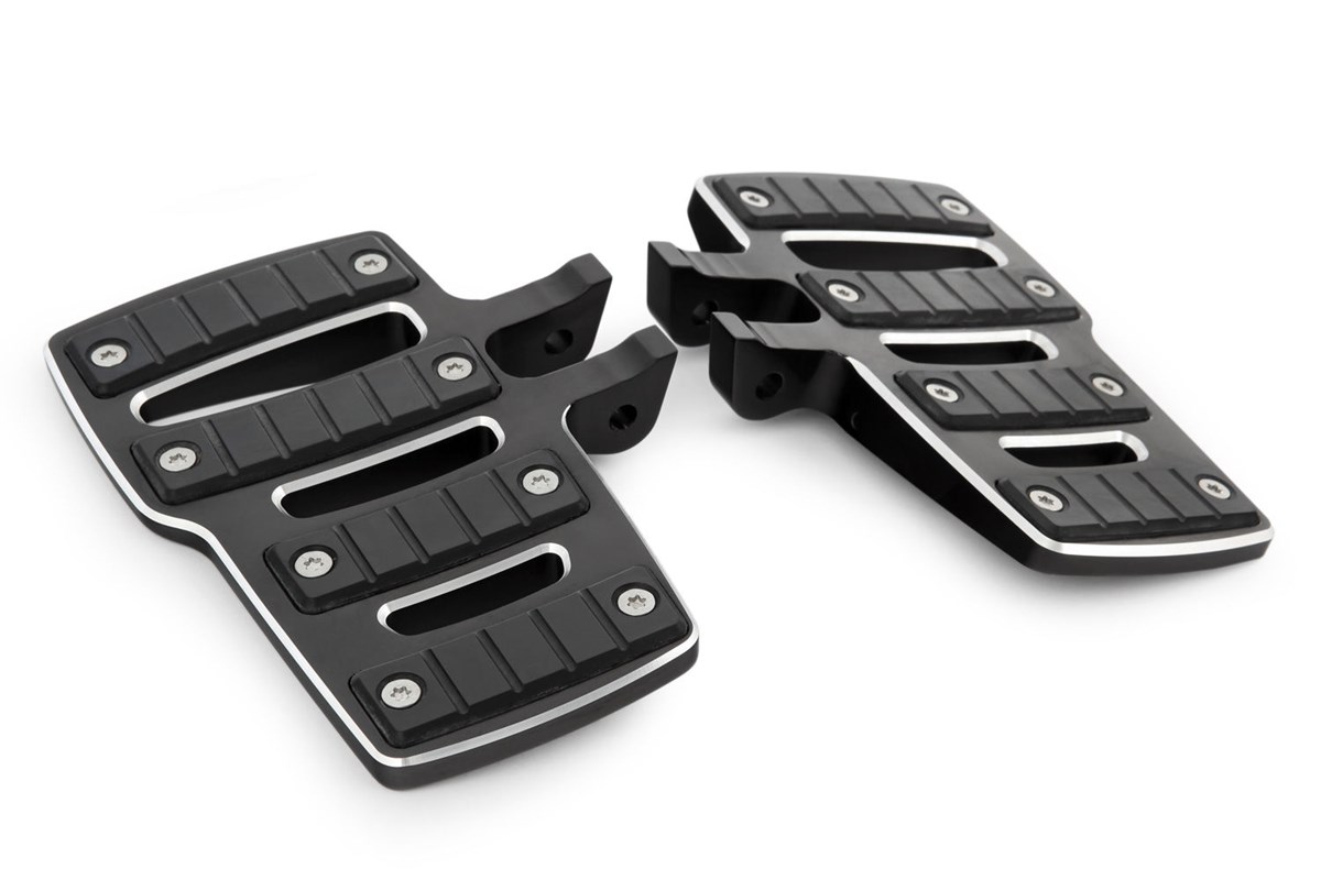Edle, sorgfältig und mit viel Liebe zum Detail gefertigte Trittbretter. Solide dimensioniert und aus hochfestem Aluminium angefertigt. Die Güte und Qualität des Finishs und das integrierte Design sorgen für eine deutliche Aufwertung der Erscheinung des Big Boxers. Der gleiche Maßstab wurde an die Ergonomie der Trittbretter angelegt, die mit der vergrößerten Trittfläche nicht nur deutlich mehr Komfort bieten, sondern auch zur erhöhten Fahrsicherheit beitragen. Die auf das Design der Trittbretter abgestimmten Gummiauflagen bieten hervorragenden Grip beim Fahren und dämpfen jegliche Vibrationen. Sie sind austauschbar.