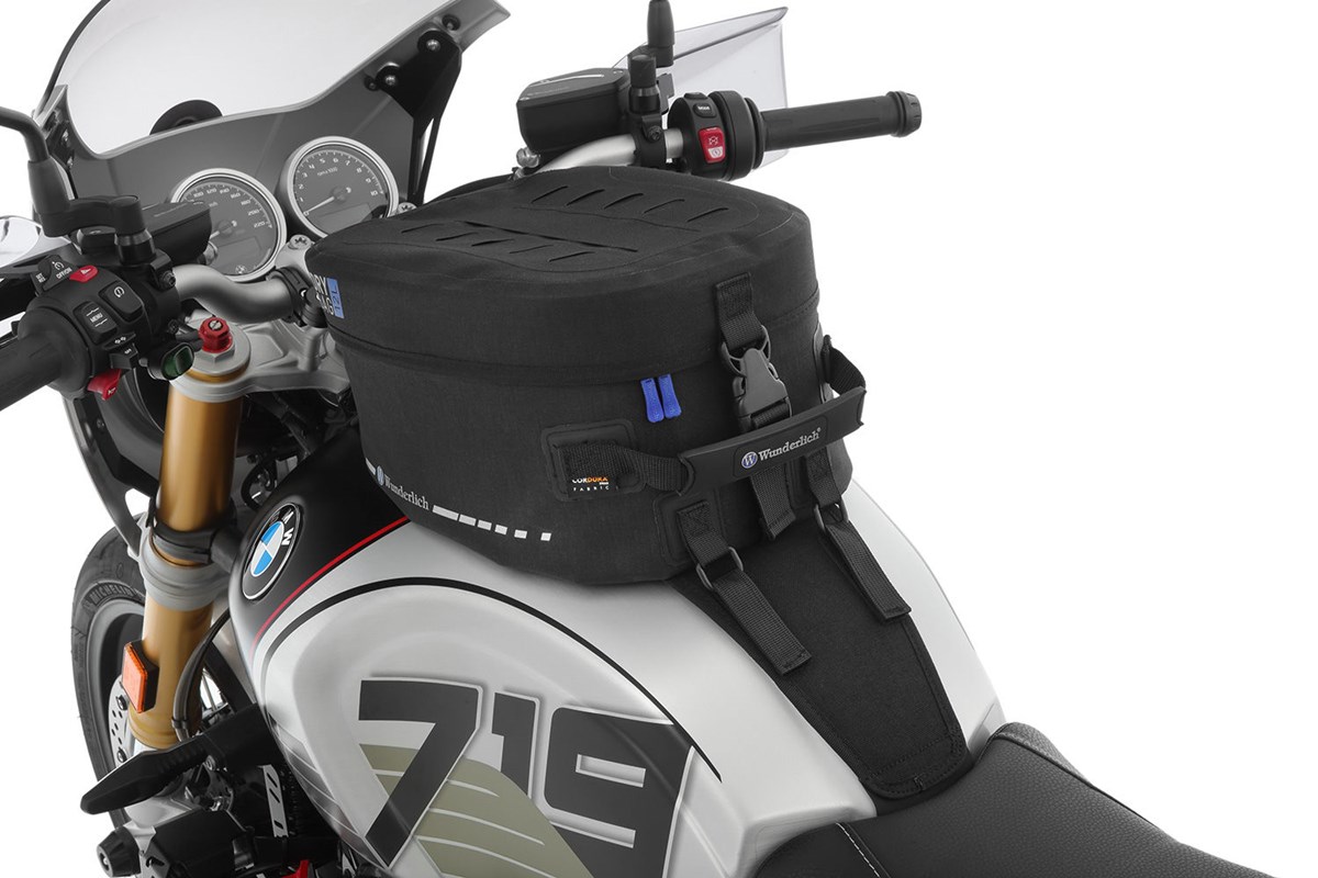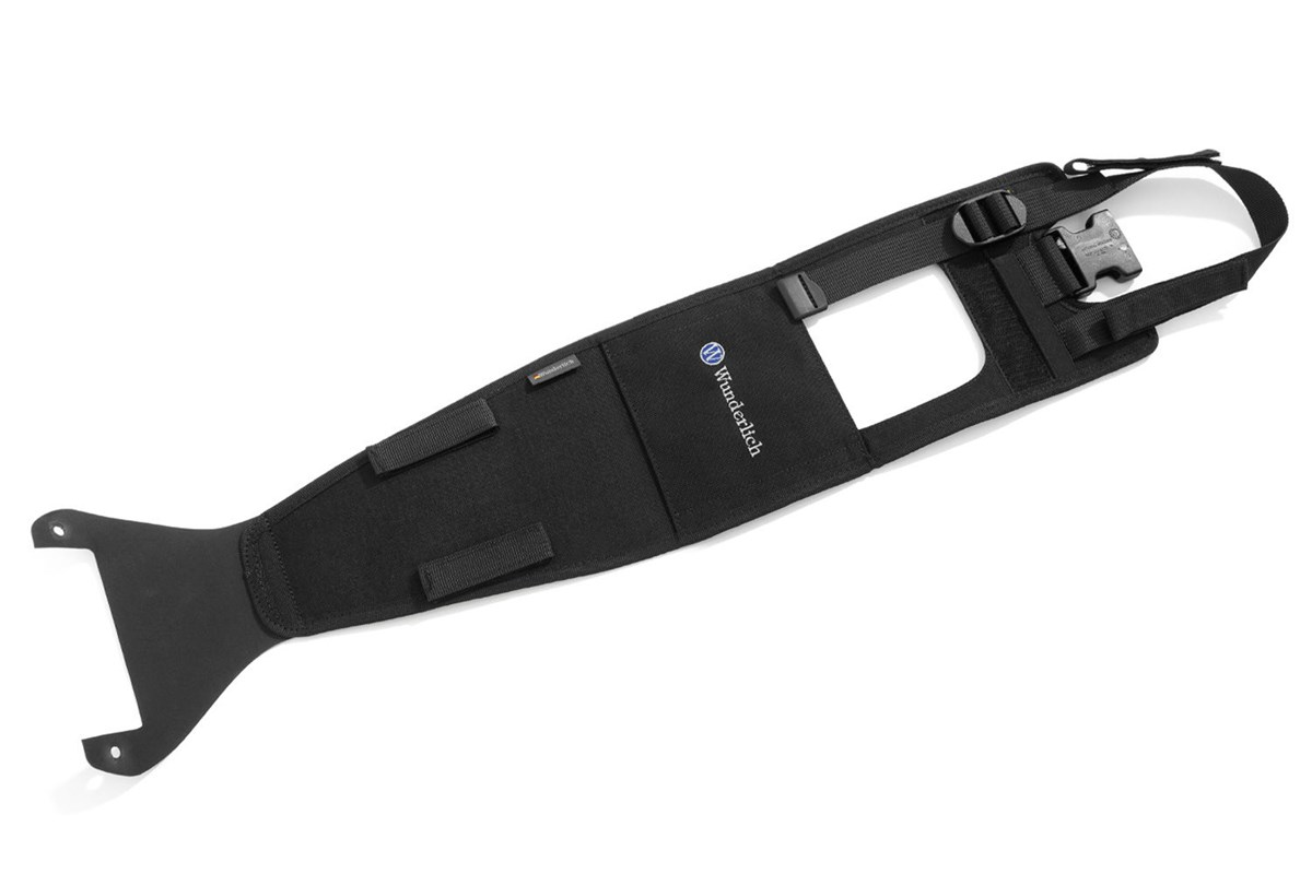 Die Systemhalterung wird mit wenigen Handgriffen am Fahrzeug befestigt und nimmt den Tankrucksack per Schnellbefestigung auf. Einfach die Haltezunge des Tankrucksacks durch die Aufnahme an der Halterung schieben und vorne verschließen. Eine einfache und deshalb geniale Schnellbefestigung, die auch mit Handschuhen und klammen Fingern ein sekundenschnelles An- und Abbauen ermöglicht: