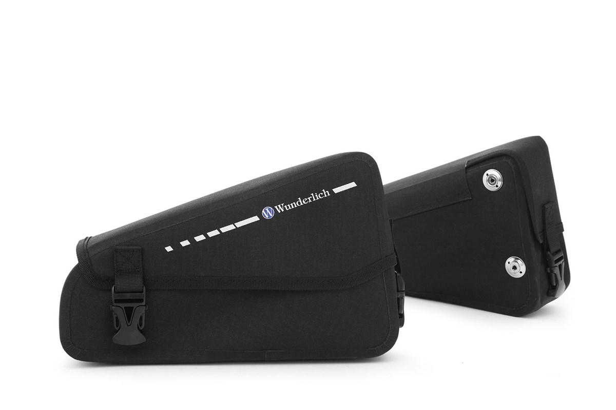 Diese zwei funktionalen DRYBAG Seitentaschen sind maßgeschneidert für unsere Rahmenverkleidungen. Sie lassen sich mit den innenliegenden LOXX-Schnellverschlüssen im Handumdrehen sicher anbringen oder abnehmen. Die Taschen bestehen aus perfekt verarbeitetem CORDURA® 500, das innen mit einer durablen TPU-Schicht wasserdicht laminiert ist. Alle Nähte und Dopplungen sind wasserdicht verschweißt. Die Abdeckklappe, die zusätzlich die wasser- und staubdichten Reißverschlüsse abdeckt und mit zwei hochwertigen Clips gesichert wird, sorgt für Wasserdichtigkeit. Sie bieten zusätzlichen Raum für alles was unterwegs griffbereit sein soll, wie z.B. Werk- oder Verbandszeug. Fürs neutrale Fahrverhalten besonders günstig ist die Anbringung nahe am Schwerpunkt. Erst recht im Offroad-Einsatz. Ohne jegliche Beeinträchtigung der Bewegungsfreiheit von Fahrer und Sozia.