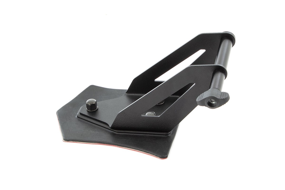 Die Befestigung des Geräteträgers erfolgt durch ein großflächiges 3M Klebepad oberhalb des Kombiinstruments auf dem Verkleidungsoberteil. Der Geräteträger besteht aus schwarz pulverbeschichtetem Edelstahl.