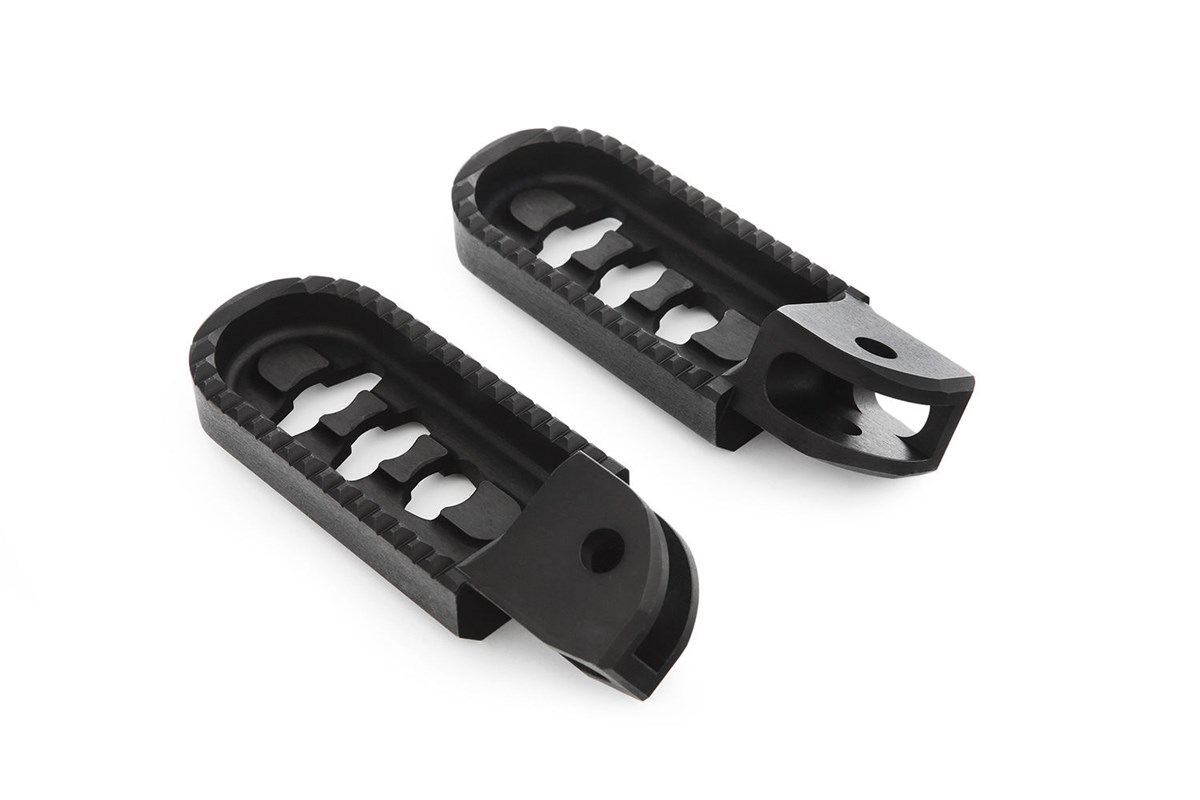 Mit unserer durchdachten Konstruktion erreichen wir eine spürbare, ergonomisch wirksame Tieferlegung, ohne die Rastenbasis und damit die Fußauflage nennenswert nach außen zu verlagern. Eine Maßnahme, die wiederum dem Komfort zuträglich ist. Gleichzeitig bleibt die Schräglagenfreiheit auf hohem Niveau erhalten. Die gute Erreichbarkeit von Schalt- und Bremshebel und deren sichere Bedienung machen das Fahren zum Vergnügen.