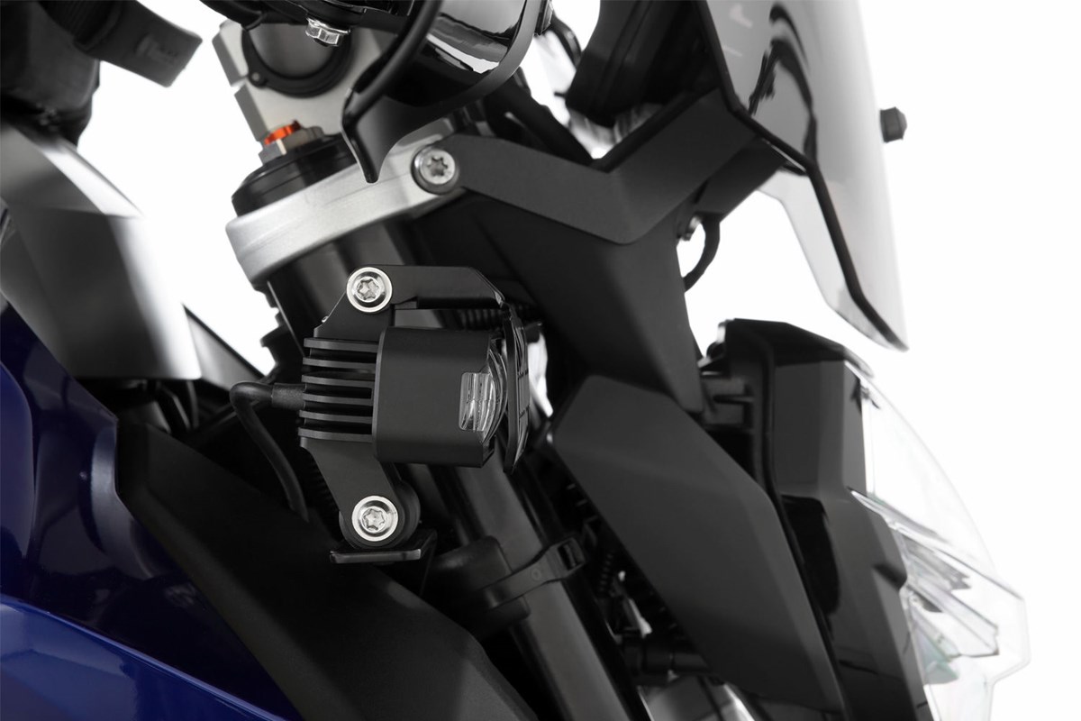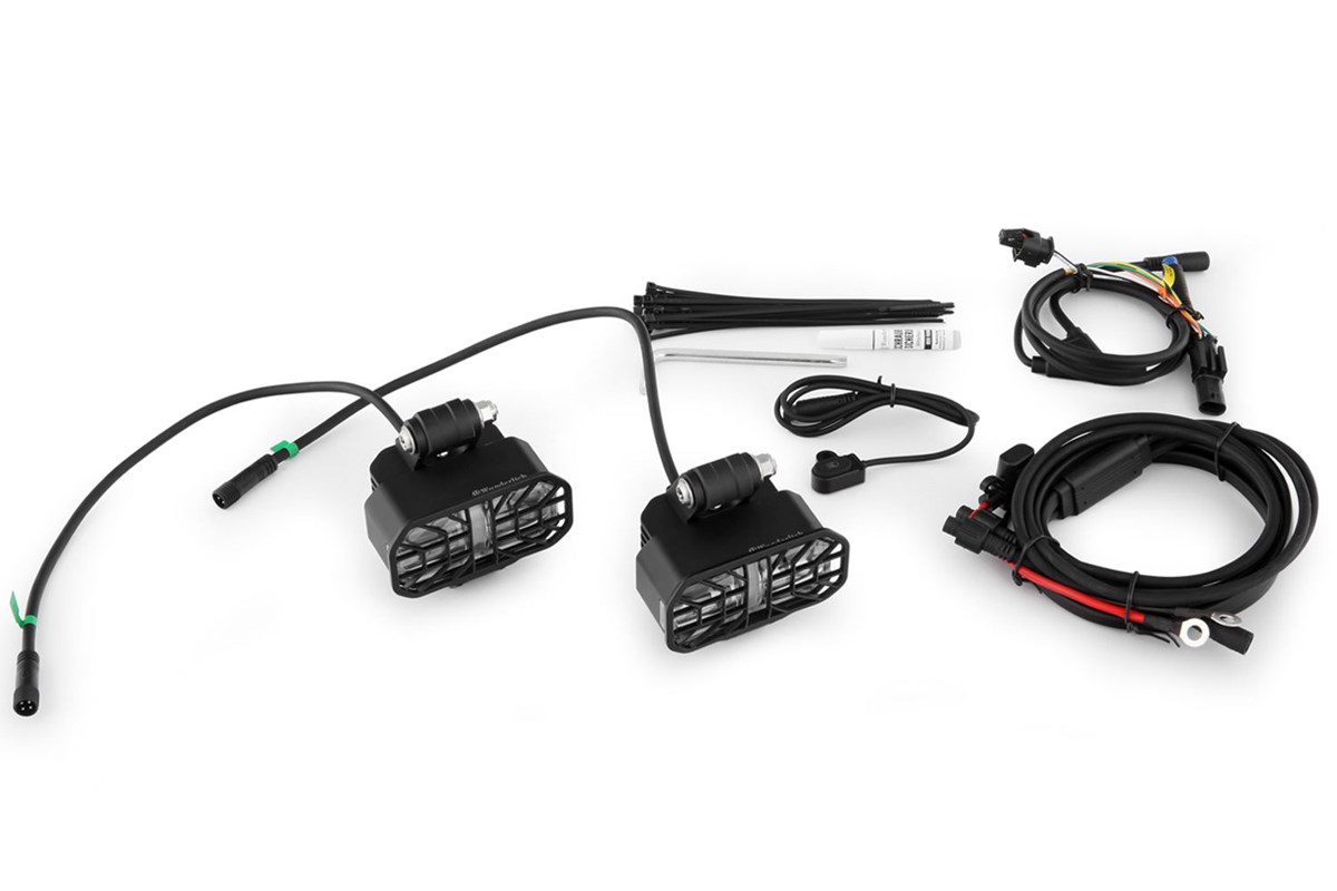 Die Bedienung erfolgt mit einem beleuchteten Schalter bequem vom Lenker aus. Die Lichtfarbe entspricht der des Hauptscheinwerfers. Der Einbau erfolgt Plug & Play.