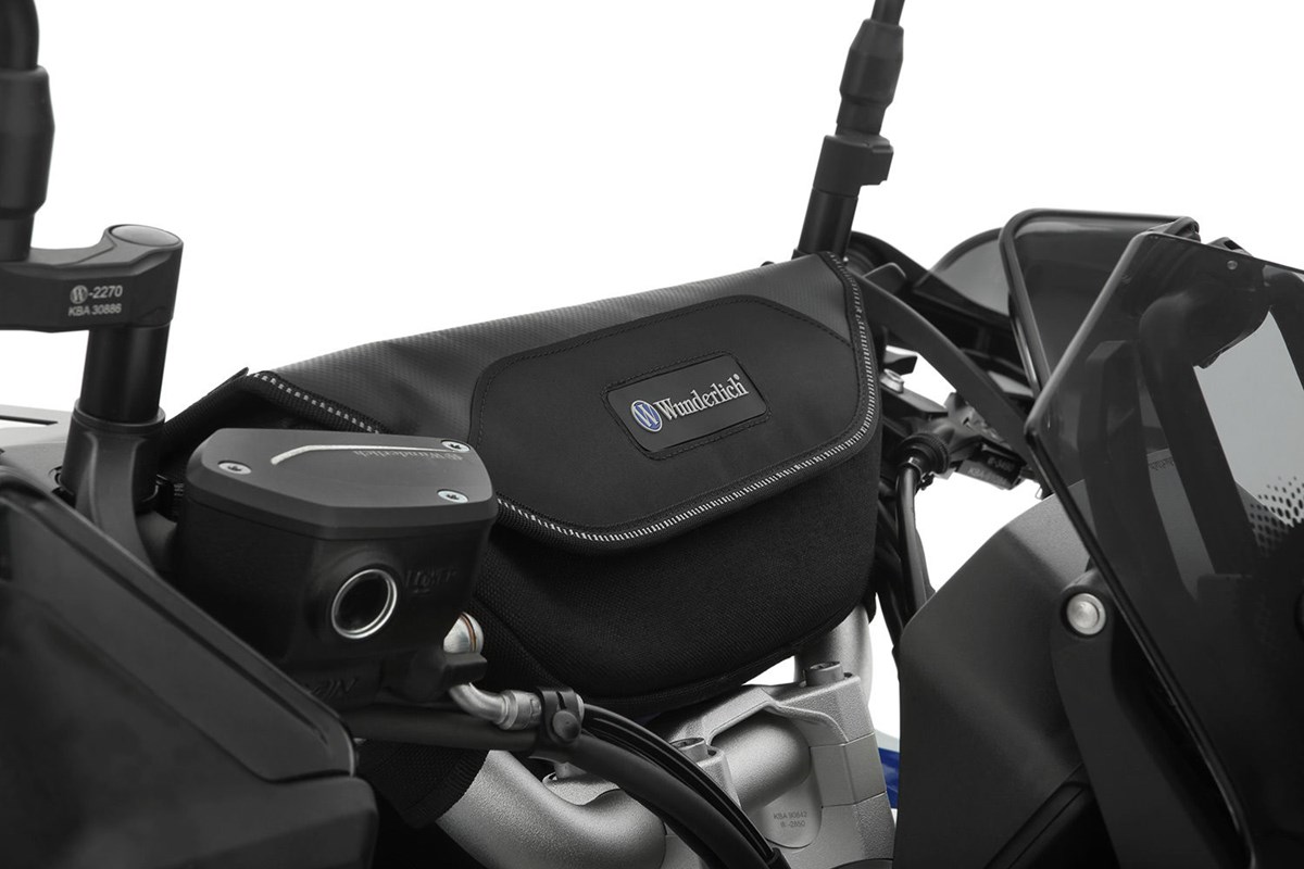 Funktionelle Lenkertasche für alles, was schnell zur Hand sein muss, aber auch bestens geschützt sein sollte. Die Lenkertasche verfügt über eine einfach zu öffnende Klappe, in die schon ein Zusatzfach und weitere Unterbringungsmöglichkeiten für Stifte, Kreditkarte etc. eingearbeitet sind. Das große Hauptfach, das wiederum per wasserabweisendem und schmutzunempfindlichem Reißverschluss verschlossen ist. Damit Handys etc. unterwegs ladbar sind, verfügt die Tasche über einen E-Connect-Zugang (wasserfesten Kabelzugang). Für Stabilität unter allen Bedingungen sorgen eingearbeitete Verstärkungen, eine Vibrations-absorbierende Fütterung und der aufwendige zwei- bzw. Dreischicht-Aufbau.