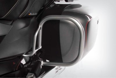 Diese Kofferschutzbügel nehmen das einzigartige Design der K 1600 B auf und werden unter den Koffern hindurchgeführt. Sie integrieren sich optisch hervorragend und setzen den sicheren Schutz der schweren K 1600 B/Grand America zum Fahrzeugheck fort. Bei einem Umfaller sind die herausragenden Koffer sehr schnell beschädigt, diese Bügel schützen zuverlässig vor teuren Reparaturen.