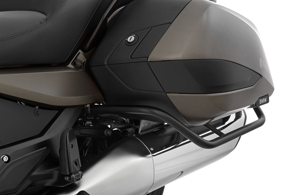 Diese Kofferschutzbügel nehmen das einzigartige Design der K 1600 B auf und werden unter den Koffern hindurchgeführt. Sie integrieren sich optisch hervorragend und setzen den sicheren Schutz der schweren K 1600 B/Grand America zum Fahrzeugheck fort. Bei einem Umfaller sind die herausragenden Koffer sehr schnell beschädigt, diese Bügel schützen zuverlässig vor teuren Reparaturen.