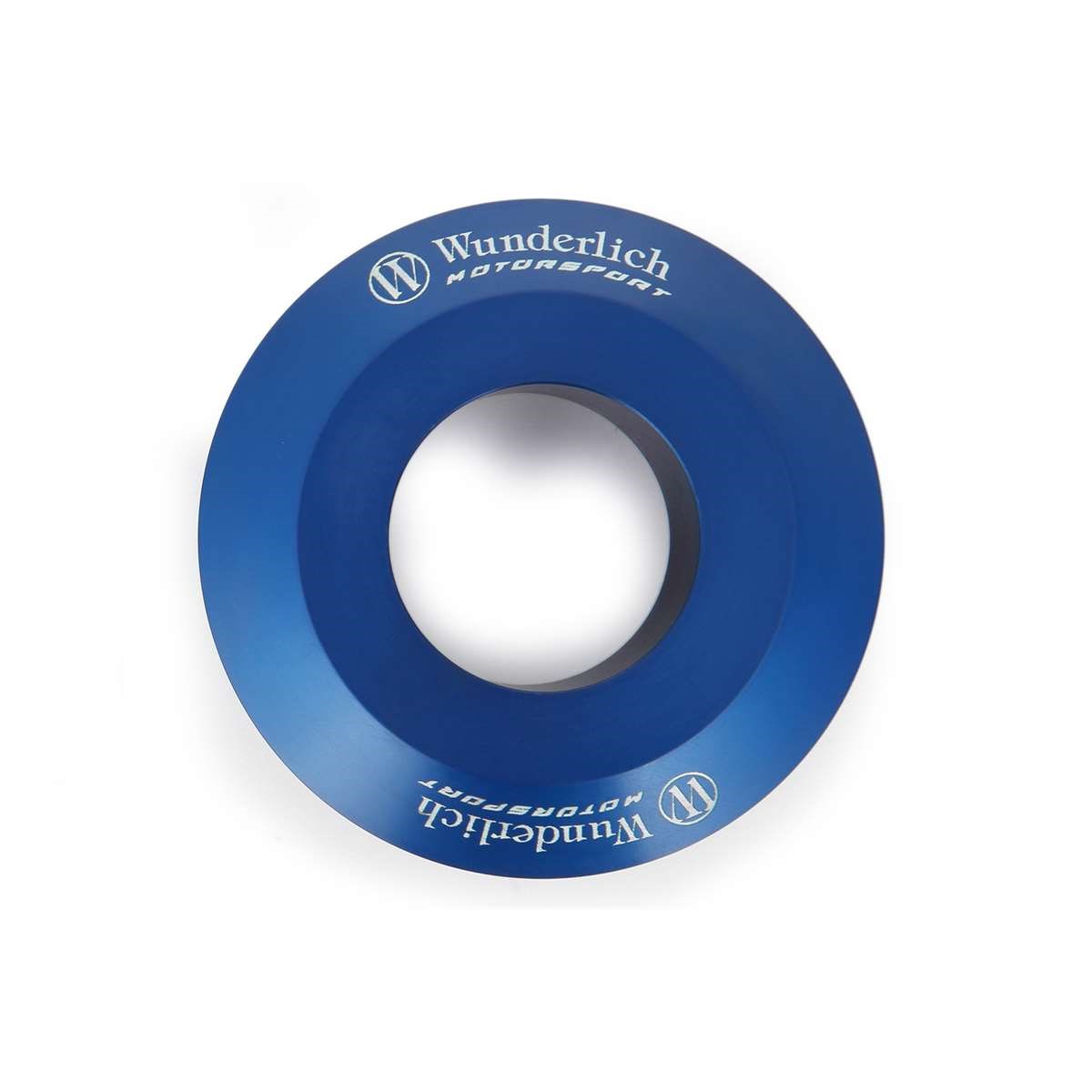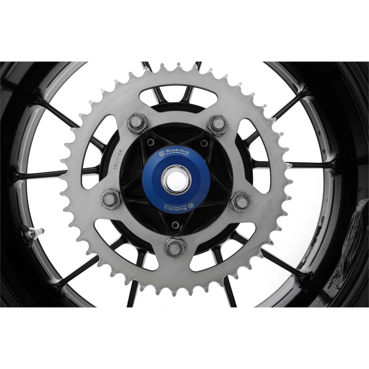 Erfahrungsgemäß fallen die originalen Distanzhülsen beim Ausbau des Hinterrads leicht aus ihrem Sitz. Wird das Rad, z.B. nach dem Reifenwechsel, wieder montiert, neigen die Serienhülsen zum Verkanten, sodass der Einbau meist sehr „fummelig“ ist und die Geduld auf die Probe stellt. Die von uns entwickelten Raddistanzhülsen werden anstelle der serienmäßigen Hülsen formschlüssig jeweils in den Radial-Wellendichtring von Felge und Kettenradträgers eingesteckt. Aufgrund ihrer Konstruktion sind diese dann fixiert und das Herausfallen wird beim Radwechsel zuverlässig verhindert. Die Distanzhülsen sind darüber hinaus großzügig, flach angefast, sodass das Einführen und die Montage des Rads spürbar leichter und schneller zu bewerkstelligen ist. Ursprünglich für den Rennsport entwickelt haben sie sich als sehr hilfreich erwiesen, um die Standzeiten in der Box deutlich zu reduzieren, wenn das Rad ausgebaut werden muss. Wir nutzen die bewährten »TRACKDAY«-Hülsen bei unseren Rennmaschinen regelmäßig im Rennbetrieb. Die Raddistanzhülsen fertigen wir aus hochwertigem Aluminium und eloxieren sie in Blau. Mit Wunderlich MOTORSPORT-Logo.