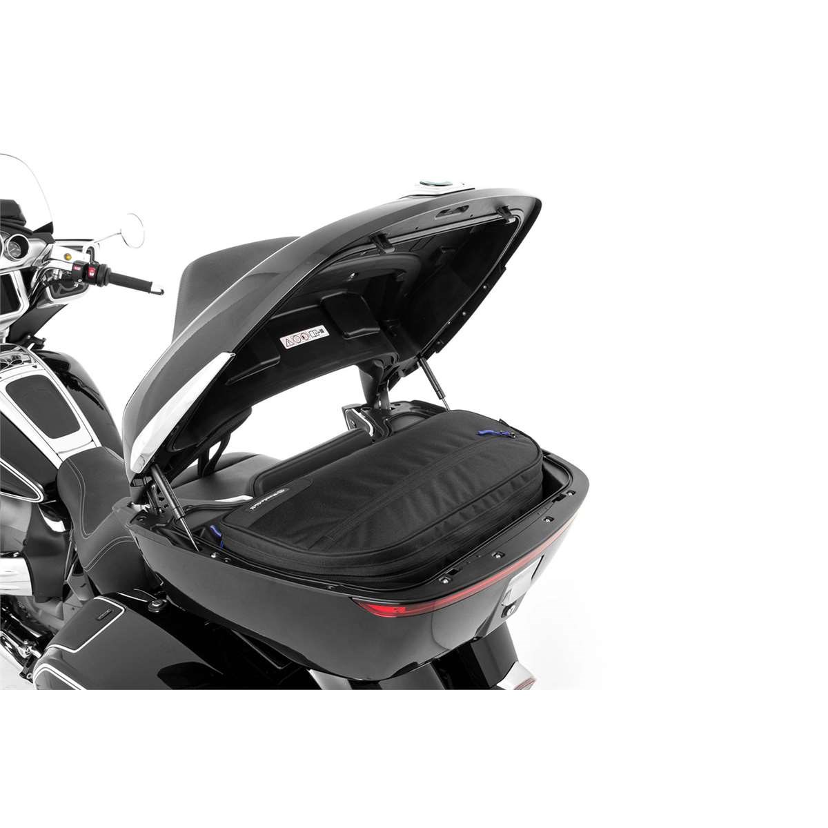 Unsere robuste, aus schwarzem CORDURA® gefertigte Topcase-Innentasche ist perfekt verarbeitet und lässt keine Wünsche offen: Mit blauem Innenfutter, einstellbarem Tragegurt und ergonomischem, praktischen Tragegriff ausgestattet, ist diese Tasche formschön konfektioniert und kann auch als Reisetasche genutzt werden. Ausgestattet mit großzügiger, mit einem Reißverschluss verschließbarer, Innentasche. Exklusive Topcase-Innentasche für das originale BMW-Topcase sowie Topcases mit ähnlicher Geometrie.