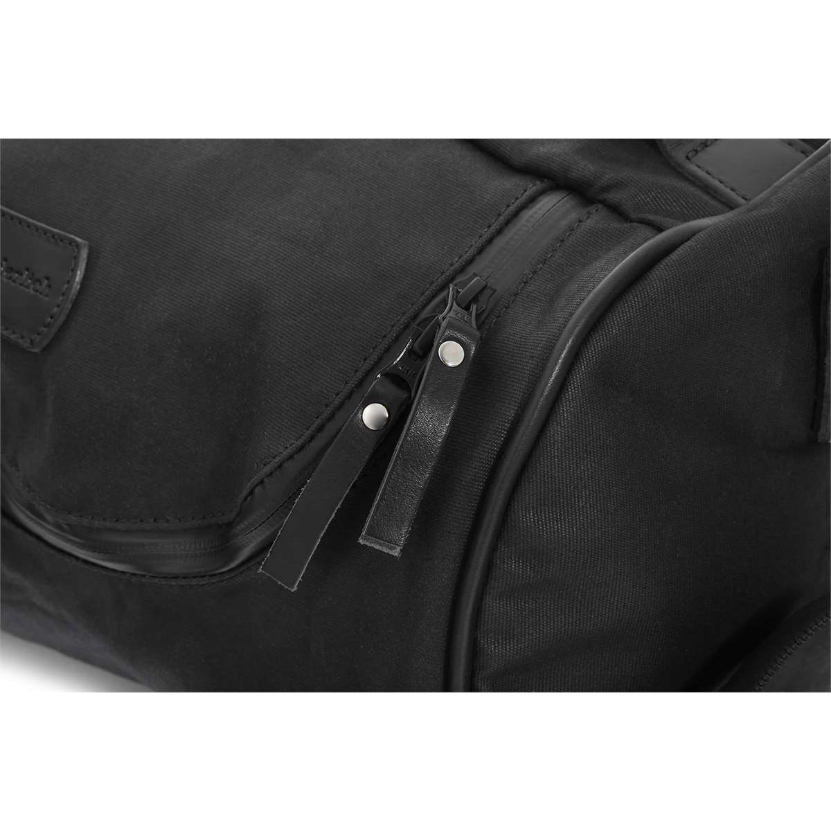 Diese stylische, schwarze Hecktasche aus gewachster Baumwolle ist nicht nur eine praktische und bildschöne Gepäcklösung, sie verleiht dem Fahrzeug auch einen ansprechenden, lässigen Look.