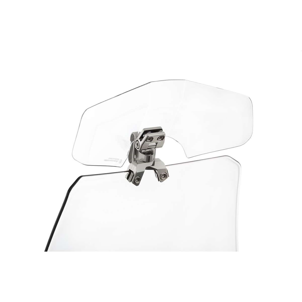 Der voll einstellbare VARIO-ERGO 3D+ Spoileraufsatz bietet die optimale Entlastung vom Winddruck für Kopf und Oberkörper sowie eine spürbare Reduktion der Verwirbelungen – besonders auch bei Autobahntempo. Er beseitigt die aerodynamischen Probleme vieler serienmäßiger Verkleidungsscheiben durch die Möglichkeit, die Abrisskante in Neigung und Höhe stufenlos individuell für jeden Fahrer einzustellen. Turbulenzen, Wirbel und die daraus resultierende Geräuschentwicklung werden deutlich reduziert oder eliminiert.