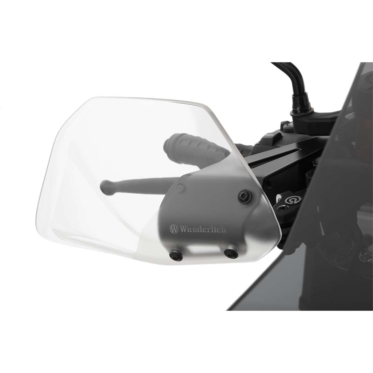 Wir haben unsere Handprotektoren zur Wasserableitung mit einem nach außen ragenden Kragen versehen, der Spritzwasser nach außen lenkt und seitlich abfließen lässt. Abgesehen von der Funktionalität sind unsere Handprotektoren dezent und ansprechend designt. Die Handprotektoren bestehen aus Acryl, sie sind thermisch beständig, kratz- und bruchfest und unempfindlich gegenüber Benzin. Sie lassen sich einfach und schnell montieren.