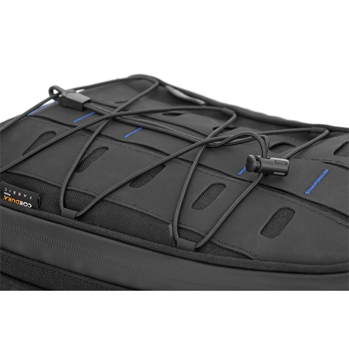 Der ELEPHANT glänzt mit seinem gestrafften Design, den nachhaltigen Geweben, den nachhaltigen Herstellungsverfahren sowie der weiter optimierten Funktionalität und Variabilität. Das Hauptfach des aus CORDURA® TrueLock™ gefertigten Tankrucksacks ist in der Größe den jeweiligen Bedürfnissen flexibel anpassbar. Die formstabilisierende Einlage schützt den Inhalt zuverlässig und vermeidet jegliches Ausbeulen oder Flattern bei hohen Geschwindigkeiten. Zusätzlich sorgen zwei seitliche Taschen für weiteren Stauraum, der unterwegs auch aus dem Sitz heraus gut zugänglich ist. Unser hauseigenes, blaues Futter sorgt für Übersichtlichkeit. Der ELEPHANT bietet ein, dem militärischen Molle-System vergleichbares, Haltesystem für zusätzliche Taschen. Es wird durch ein praktisches, elastisches Gepäcknetz ergänzt. Wie üblich sind die Reißverschlüsse wasserabweisend ausgeführt und mit ergonomisch geformten, griffgünstigen Zippern versehen. Auf die wasserabweisende Kabeldurchführung für eine elektrische Versorgung oder das Smartphone Ladekabel muss man genauso wenig verzichten, wie auf die vorbereitete Haltelasche für den passenden Organizer (Art.-Nr. 20680-000) und das Tragegeschirr, dass den Tankrucksack jenseits des Motorrads zur Umhängetasche oder in einen herkömmlichen Rucksack verwandelt.