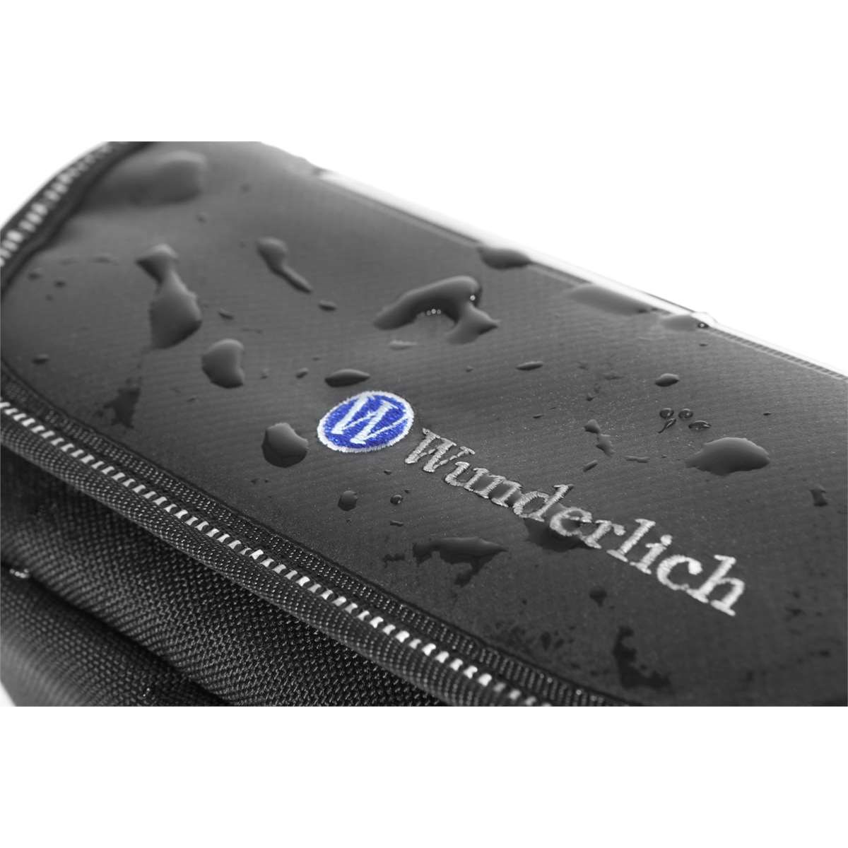 Die Lenkertasche verfügt über eine einfach zu öffnende Klappe, in der schon ein Zusatzfach und weitere Unterbringungsmöglichkeiten für Stifte, Kreditkarte etc. eingearbeitet sind. Das große Hauptfach ist mit einem wasserabweisendem und schmutzunempfindlichem Reißverschluss verschlossen. Damit Handys etc. unterwegs ladbar sind, verfügt die Tasche über einen wasserfesten E-Connect-Kabelzugang. Für Stabilität unter allen Bedingungen sorgen eingearbeitete Verstärkungen, eine Vibrations-absorbierende Fütterung und der aufwendige Zwei- bzw. Dreischicht-Aufbau.