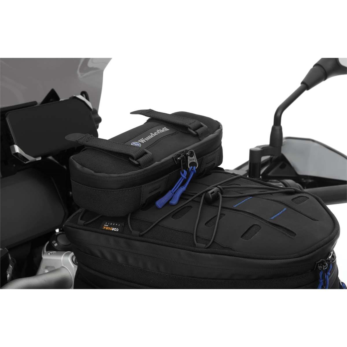 Hinweis: Die Aufsatztasche kann ausschließlich auf Wunderlich Tankrucksäcken und Taschen befestigt werden, die mit unserem, dem militärischen Molle System vergleichbaren, Haltesystem ausgestattet sind.