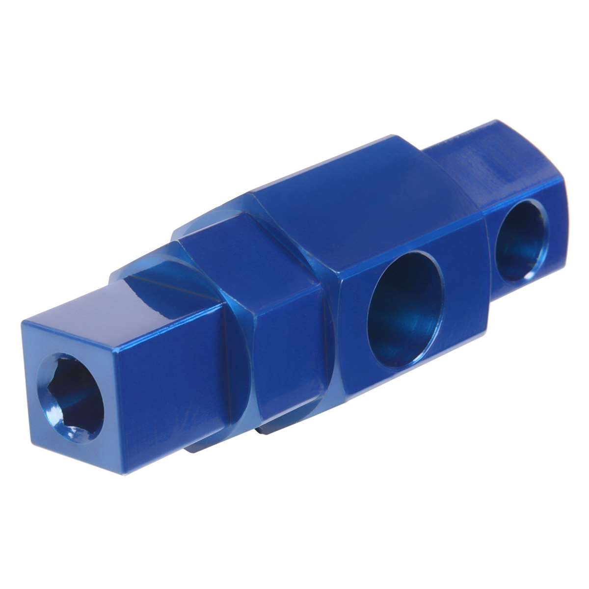 Unser MultiTool verfügt über ein 1/2-Zoll Vierkant zur Aufnahme passender Stecknüsse, z.B. aus dem Ratschenkasten. Im Vierkant selbst befindet sich der magnetische 8 mm Bithalter zum Einsetzen gängiger Bits. Das MultiTool dient dann als zweckmäßiger Drehgriff. Darüber hinaus sind drei Innensechskant Schlüssel in 17, 19 und 22 mm vorhanden. Diese können auch mit einer Ratsche oder einem Ring-/Gabelschlüssel der Schlüsselweite 17, 19 und 22 mm genutzt werden, um bei Bedarf ein höheres Drehmoment zu erzeugen. Zwei praktische durchgehende Querbohrungen (Ø 8 und 11 mm) erlauben zudem das Einsetzen eines Stifts (zur Not kann auch der Schraubendreher aus dem Bordwerkzeug eingesetzt werden), ebenfalls um mehr Drehmoment übertragen zu können.