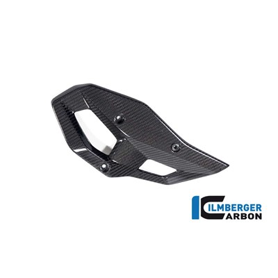 Durch die Kombination aus eleganter Rundung und harter Kante schmiegt sich der Auspuff Hitzeschutz aus Carbon wie kein anderer in die moderne Linienführung der neuen Aprilia.