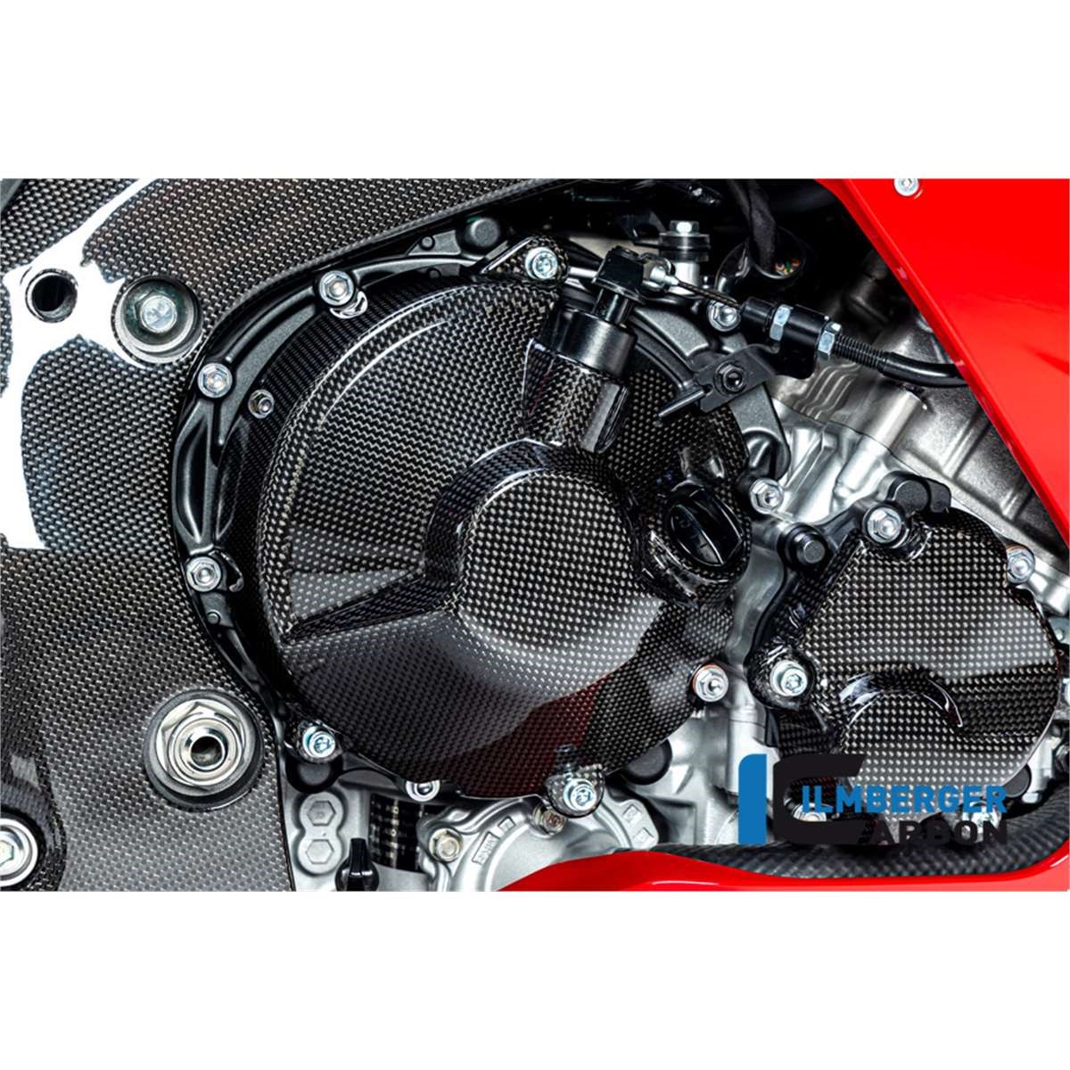 Die Kupplungsdeckelabdeckung aus Carbon in glänzendem Finish für die Honda CBR 1000 RR-R/SP ab BJ 2020 ersetzt das originale Bauteil unter Verwendung der originalen Befestigungspunkte.