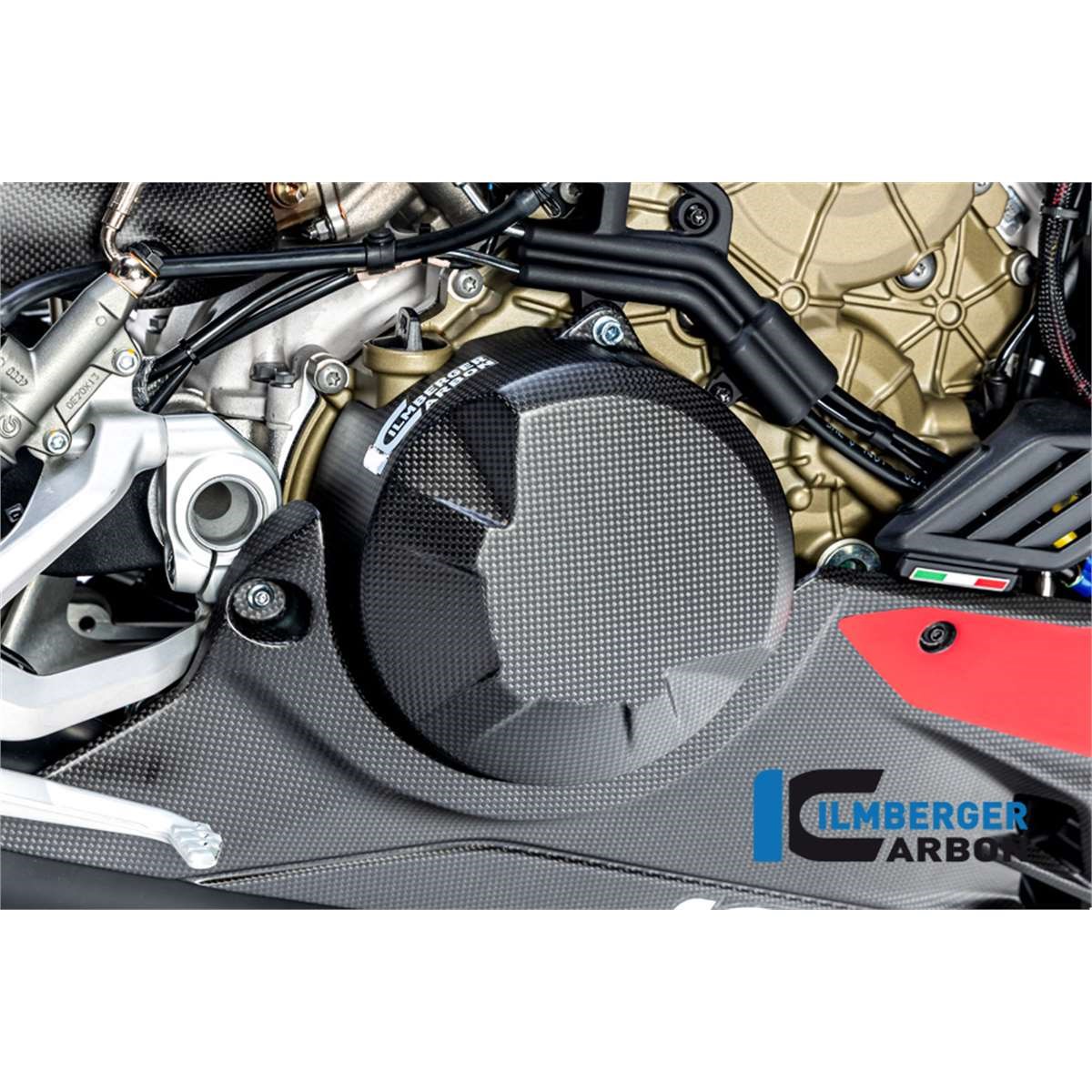 Die Abdeckung für den Kupplungsdeckel in mattem Finish aus Carbon für die Ducati V4 Streetfighter ersetzt das originale Bauteil unter Verwendung der originalen Befestigungspunkte.