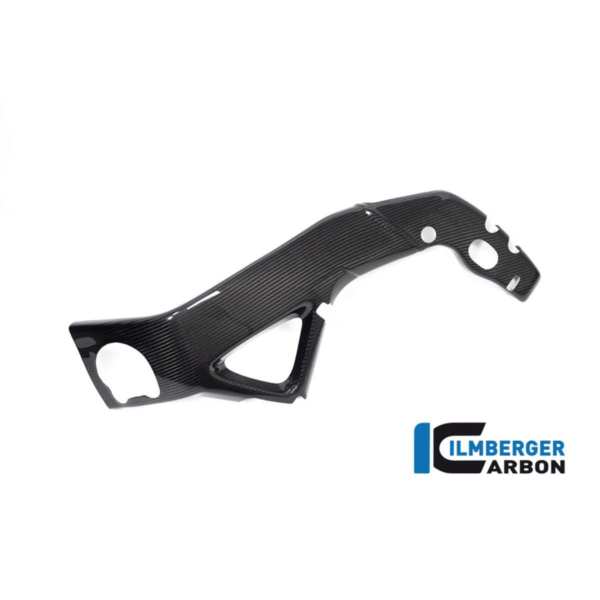 Die Rahmenabdeckung aus Carbon wird direkt auf den Rahmen aufgebracht. Sie verdeckt diesen und zieht die Blicke auf sich. Aber nicht nur optisch kann die Rahmenabdeckung überzeugen. Dank der hohen Oberflächengüte von Ilmberger Carbon, hält die Rahmenabdeckung auch intensivger Nutzung über einen langen Zeitraum stand. Somit gibt es weder nach unzähligen langen Touren, noch bei der täglichen Nutzung des Motorrads unangenehme Arbiebsflecken auf der rauen Gussoberfläceh des Rahmens. Um den hochwertigen Eindruck zu perfektionieren, verläuft die Rahmenabdeckung nicht nur an der senkrechten Rahmenstrebe, wo das Bein schleift, sondern zieht sich noch weit nach oben, wo sie unter der dichten Seitenverkleidung verschwindet. Somit ist von außen nur schwer zu erkennen, wo die Rahmenverkleidung anfängt und wo sie endet.