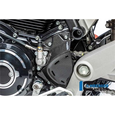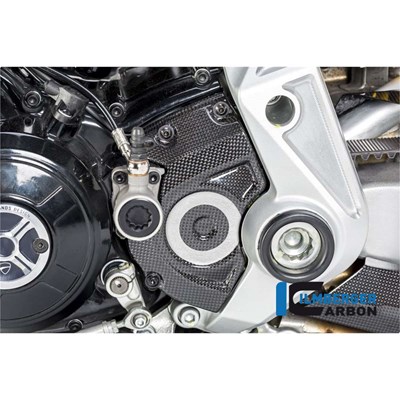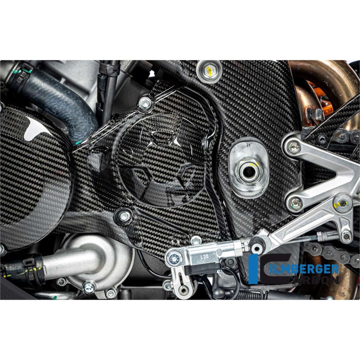 Die Ritzelabdeckung ist eines der am meist unterschätzten Bauteile am ganzen Motorrad. Zentral am Motorrad verbaut umgibt sie das Kettenritzel und leistet mehr als es auf den ersten Blick scheinen mag. Es schützt den Motor und viele weitere Komponenten vor herumfliegenden Ketenfett bei der Fahrt. Dieses ist als Schmutz besodners hartnäckig und lässt sich von der weichen Oberfläches des Originalteils nur schwer wieder entfernen. Eine harte Oberfläche, wie sie bei hochewrtigem Carbon vorkommt eignet sich hier besser.