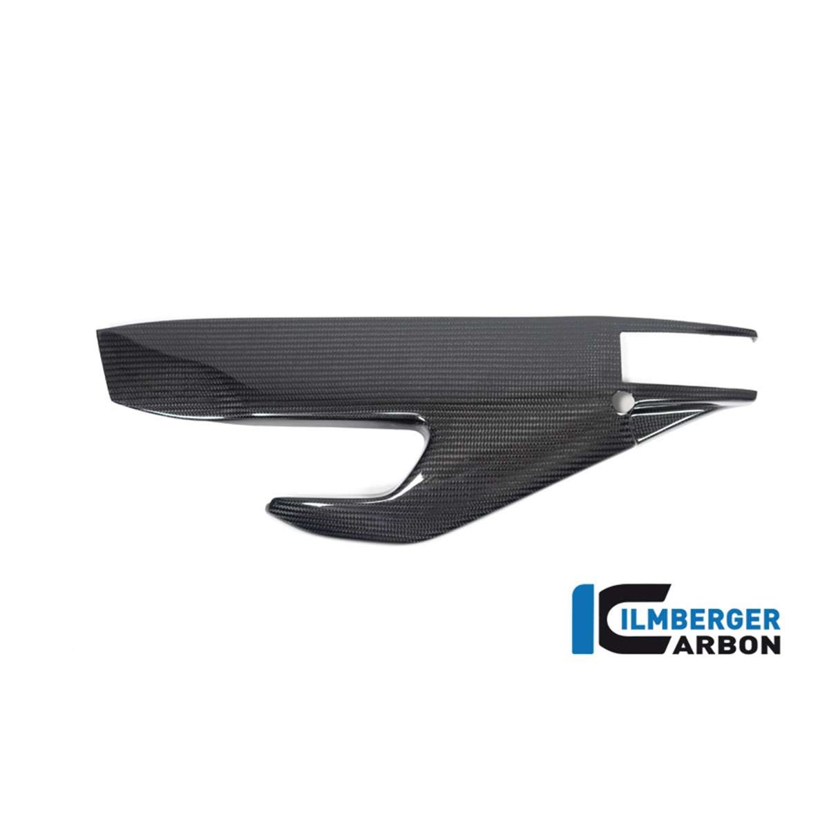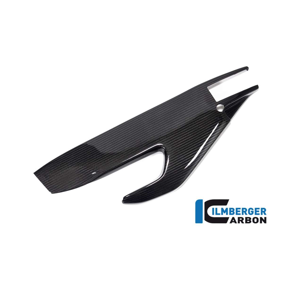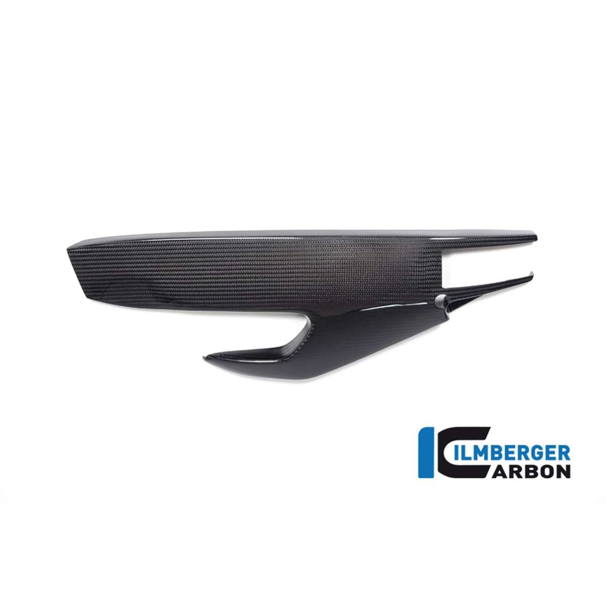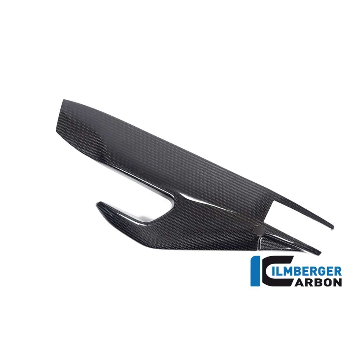 Ohne zusätzliche Schrauben schützt die Schwingenabdeckung aus Carbon alles darunterliegende. Der Stufenlose Kettenspanner bleibt frei und eine optimale Wartung des Motorrads bleibt gewährleistet. Optisch wirkt Sie dank des Tiefeneffekts von Carbon deutlich intensiver als die raue Gussoberfläche der Schwinge.