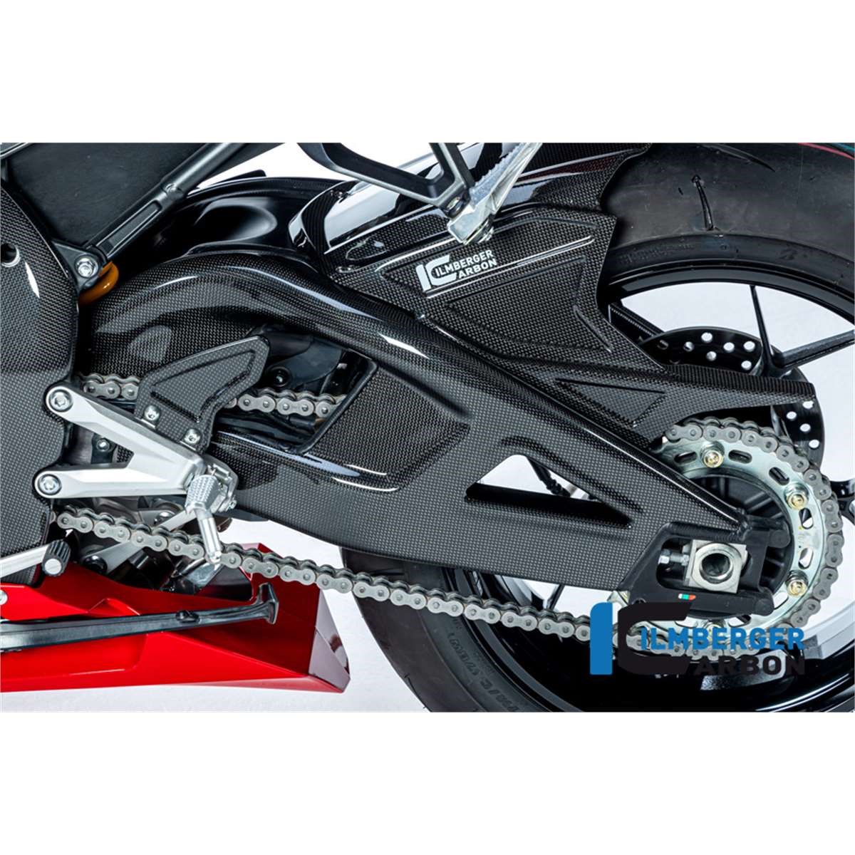 Die linke Schwingenabdeckung aus Carbon in glänzendem Finish für die Honda CBR 1000 RR-R/SP ab BJ 2020 ersetzt das originale Bauteil unter Verwendung der originalen Befestigungspunkte.