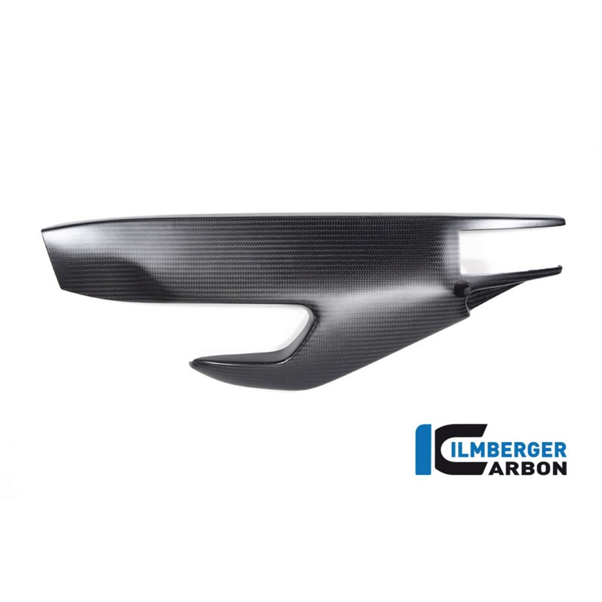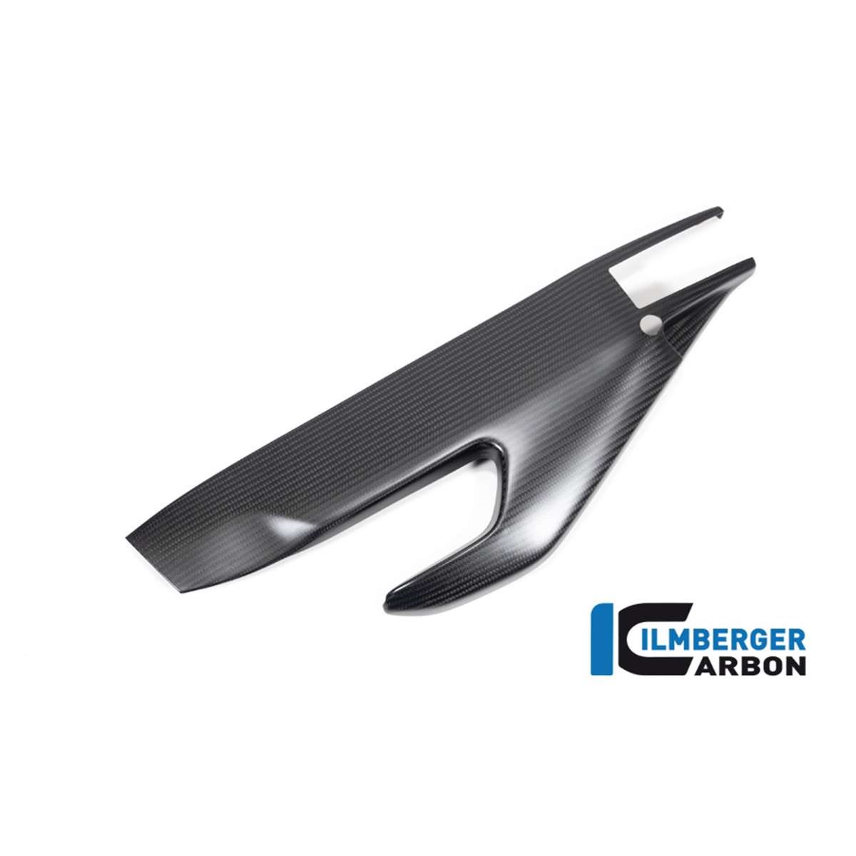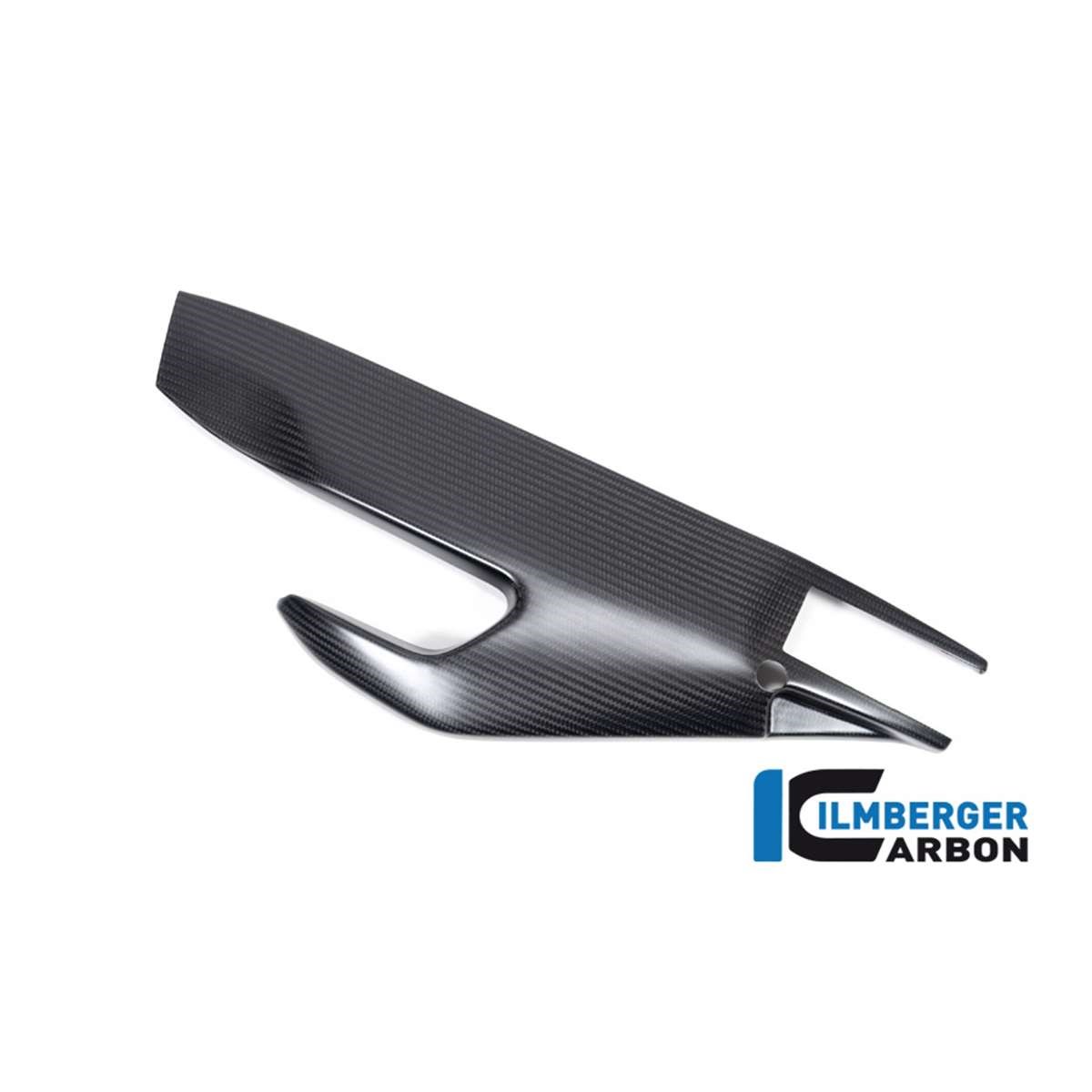 Ohne zusätzliche Schrauben schützt die Schwingenabdeckung aus Carbon alles darunterliegende. Der Stufenlose Kettenspanner bleibt frei und eine optimale Wartung des Motorrads bleibt gewährleistet. Optisch wirkt Sie dank des Tiefeneffekts von Carbon deutlich intensiver als die raue Gussoberfläche der Schwinge.