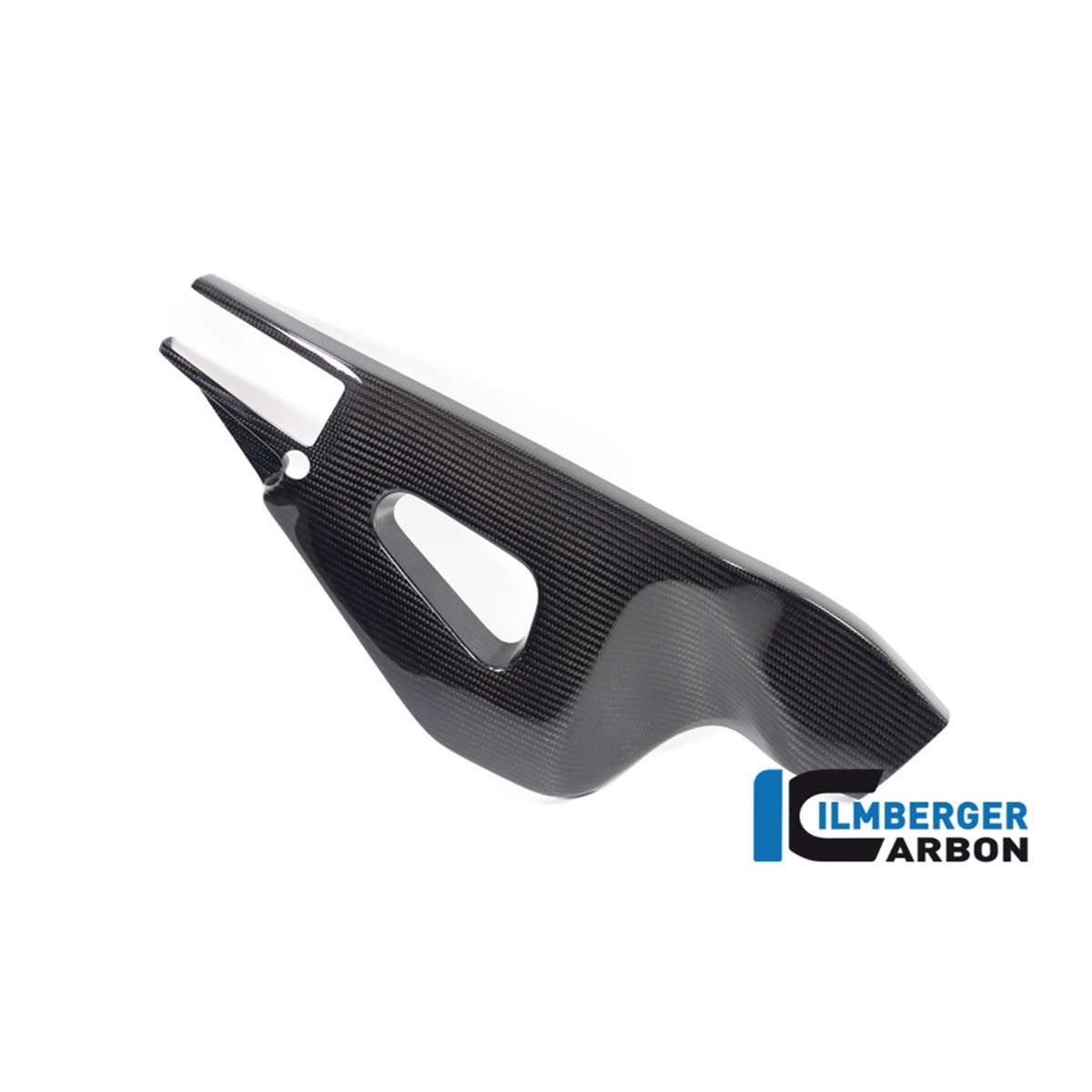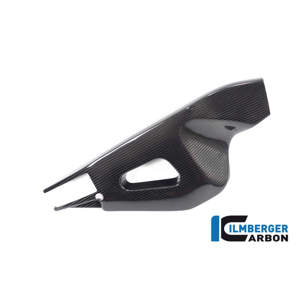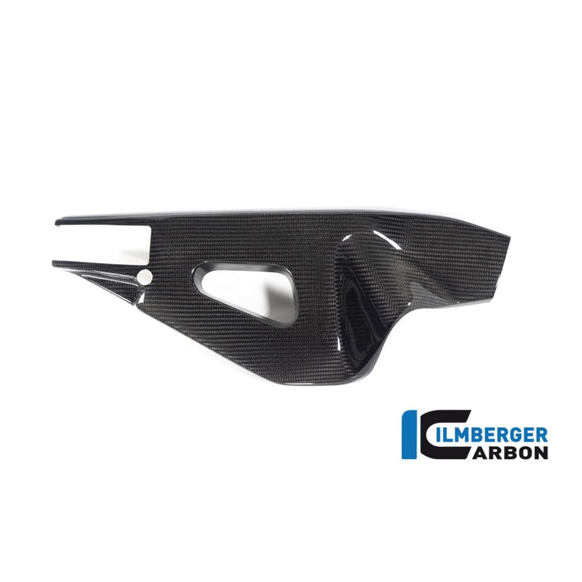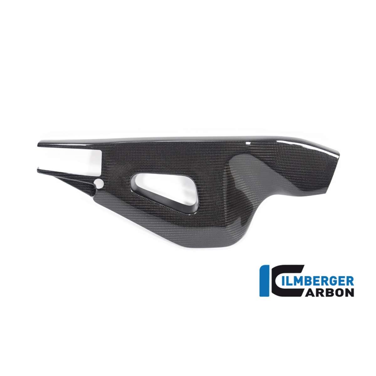 Ohne zusätzliche Schrauben schützt die Schwingenabdeckung aus Carbon alles darunterliegende. Der Stufenlose Kettenspanner bleibt frei und eine optimale Wartung des Motorrads bleibt gewährleistet. Optisch wirkt Sie dank des Tiefeneffekts von Carbon deutlich intensiver als die raue Gussoberfläche der Schwinge.